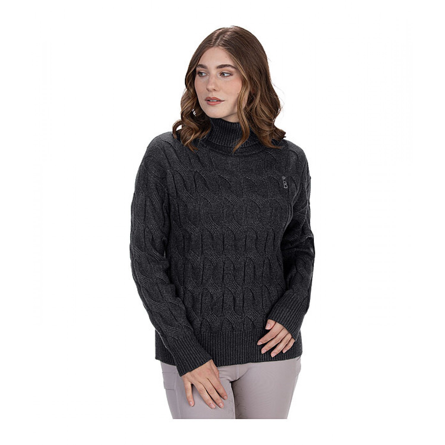 Очень мягкий и тёплый пуловер с узором крупной косы. Состав: 54% полиакрил, 28% полиэстер, 18% нейлон.
