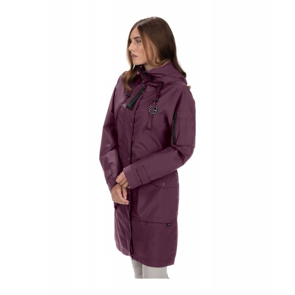 Повседневная с регулируемым капюшоном, который можно закрепить сзади. Очень удобный крой. Водонепроницаемая, ветрозащитная и дышащая. Скрытая двусторонняя молния, два больших накладных кармана с дополнительными боковыми карманами спереди, один карман на рукаве на молнии, один внутренний карман на молнии, регулируемая талия, регулируемые манжеты с эластичными ветрозащитными лентами и один длинный разрез с молнией сзади. 100% полиэстер.