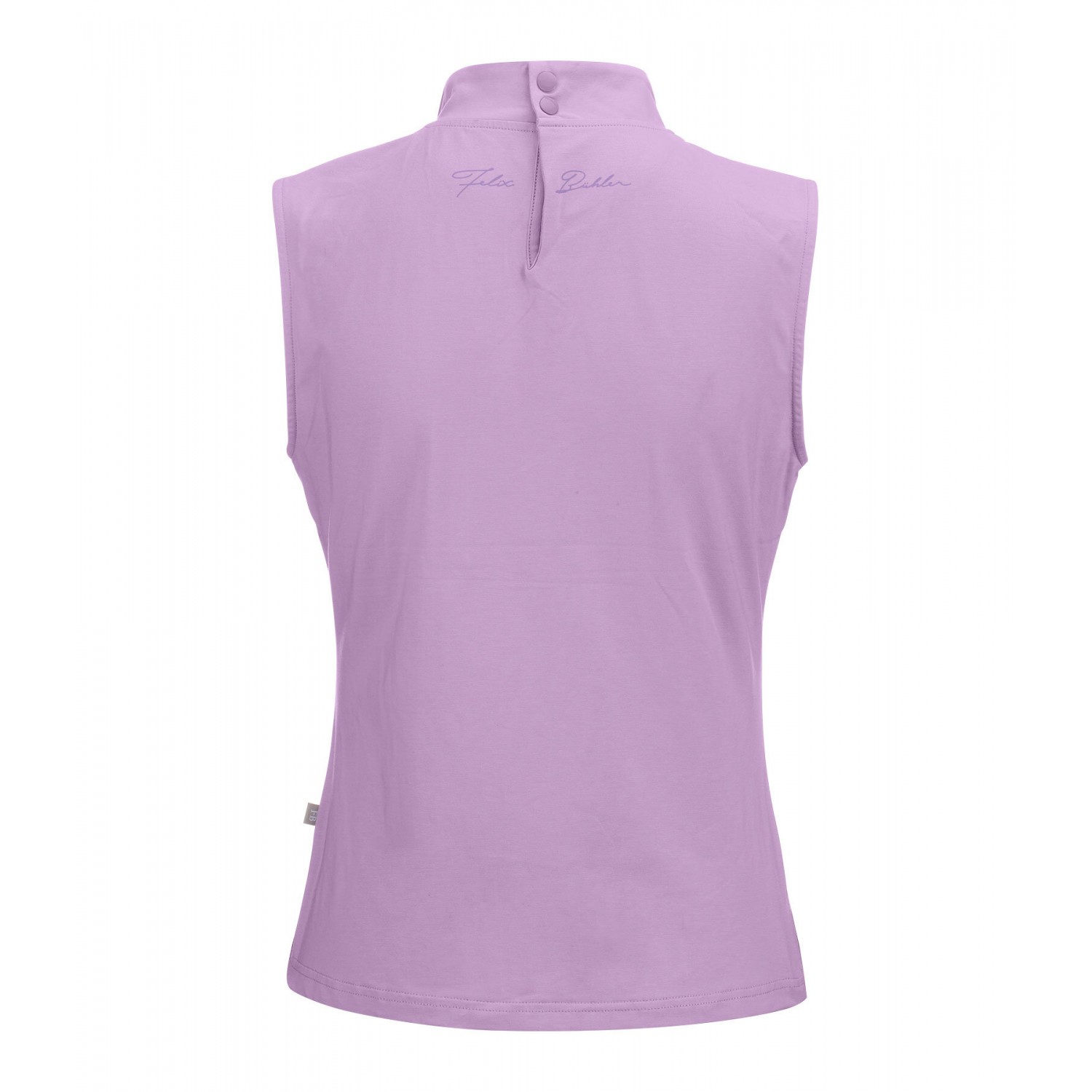 Элегантный, невероятно мягкий топ без рукавов со стоячим воротником и складками спереди. Логотип на спине под воротником. Разрез на кнопках сзади для удобства одевания. 95% хлопок, 5% эластан.