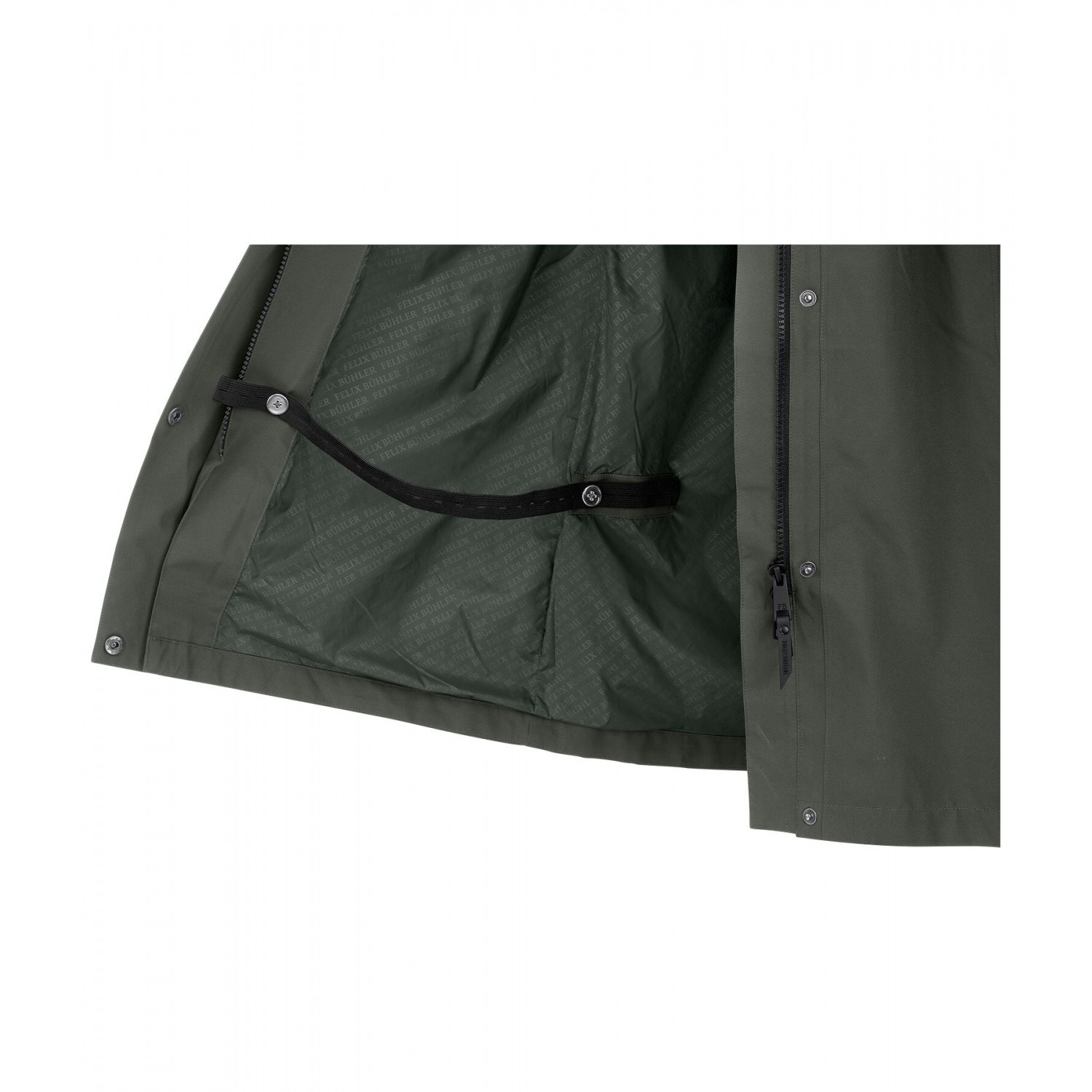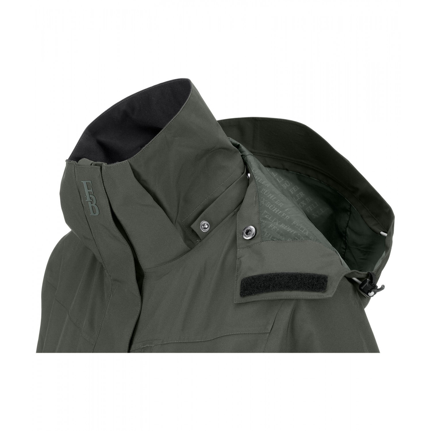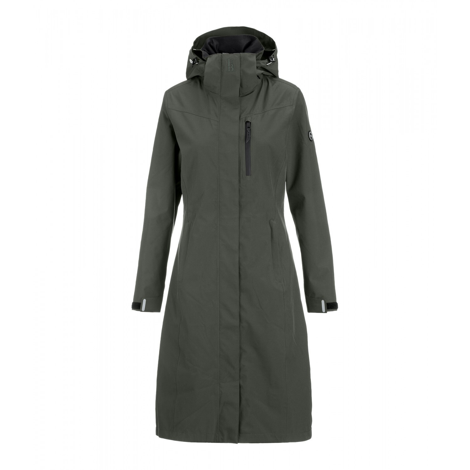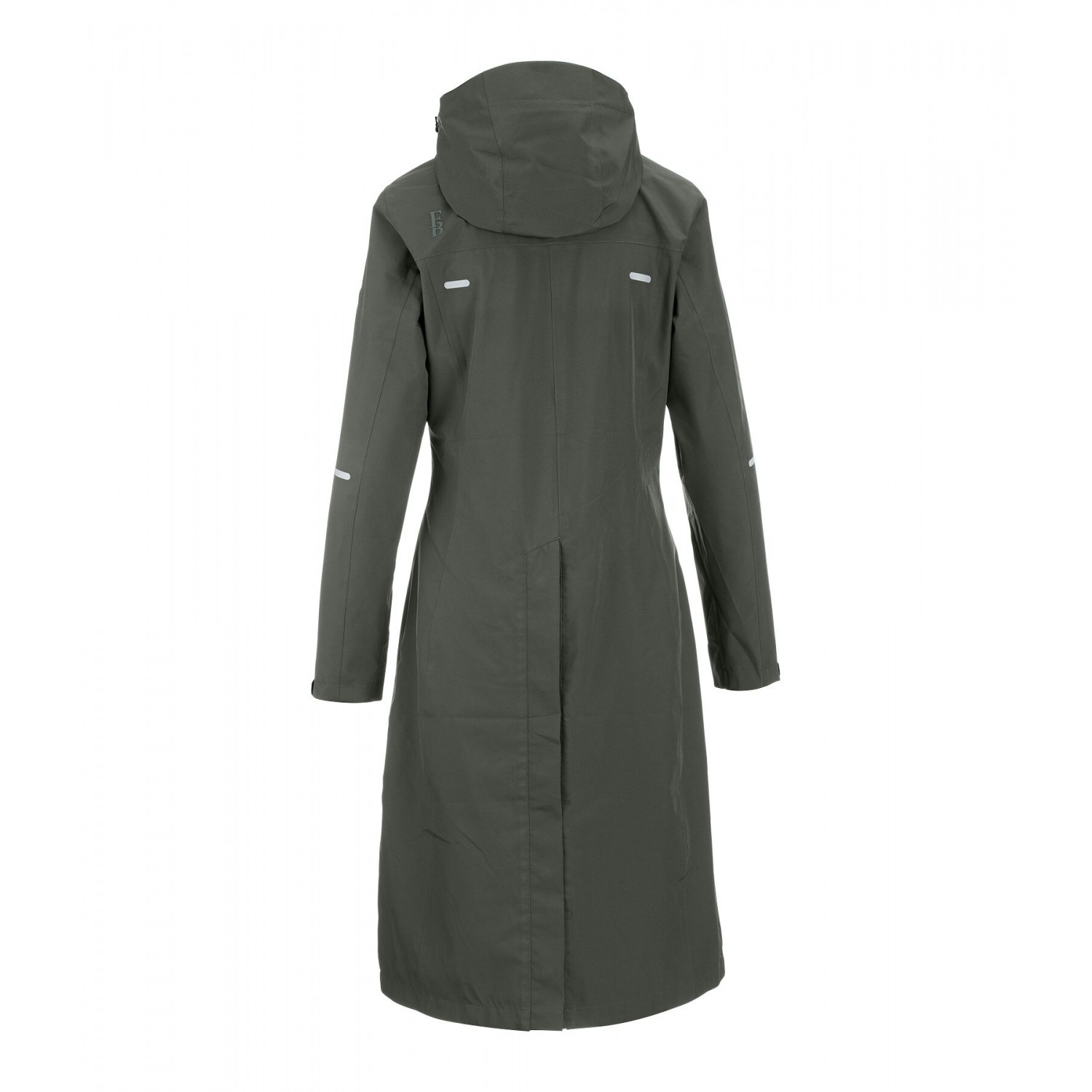 Плащ из высококачественной функциональной ткани, с подкладкой из дышащей сетки до пояса. Водонепроницаемая, ветрозащитная и дышащая ткань. Съемный и регулируемый капюшон, который можно закрепить сзади, двусторонняя молния с подкладкой и защитой подбородка, два передних кармана на молнии с подкладкой, один водонепроницаемый нагрудный карман на молнии, регулируемые манжеты, светоотражающие элементы и удлиненный разрез для верховой езды с застежками-кнопками сзади. 100% полиэстер.