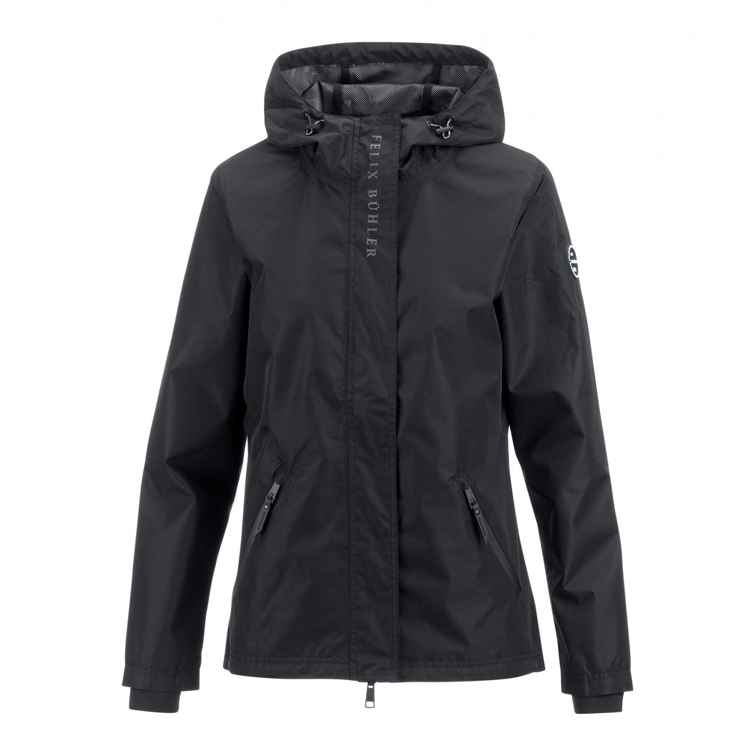 Высокоэффективная куртка с капюшоном из легкой летней ткани с подкладкой из дышащей сетки. Водонепроницаемая, ветрозащитная и дышащая. Скрытая двусторонняя молния с подкладкой спереди, два водонепроницаемых кармана на молнии и эластичные манжеты. Регулируемый капюшон с сетчатой подкладкой можно закрепить сзади. 100% полиэстер.