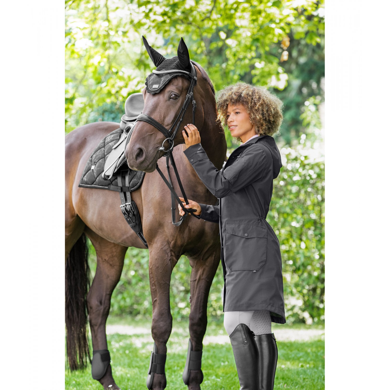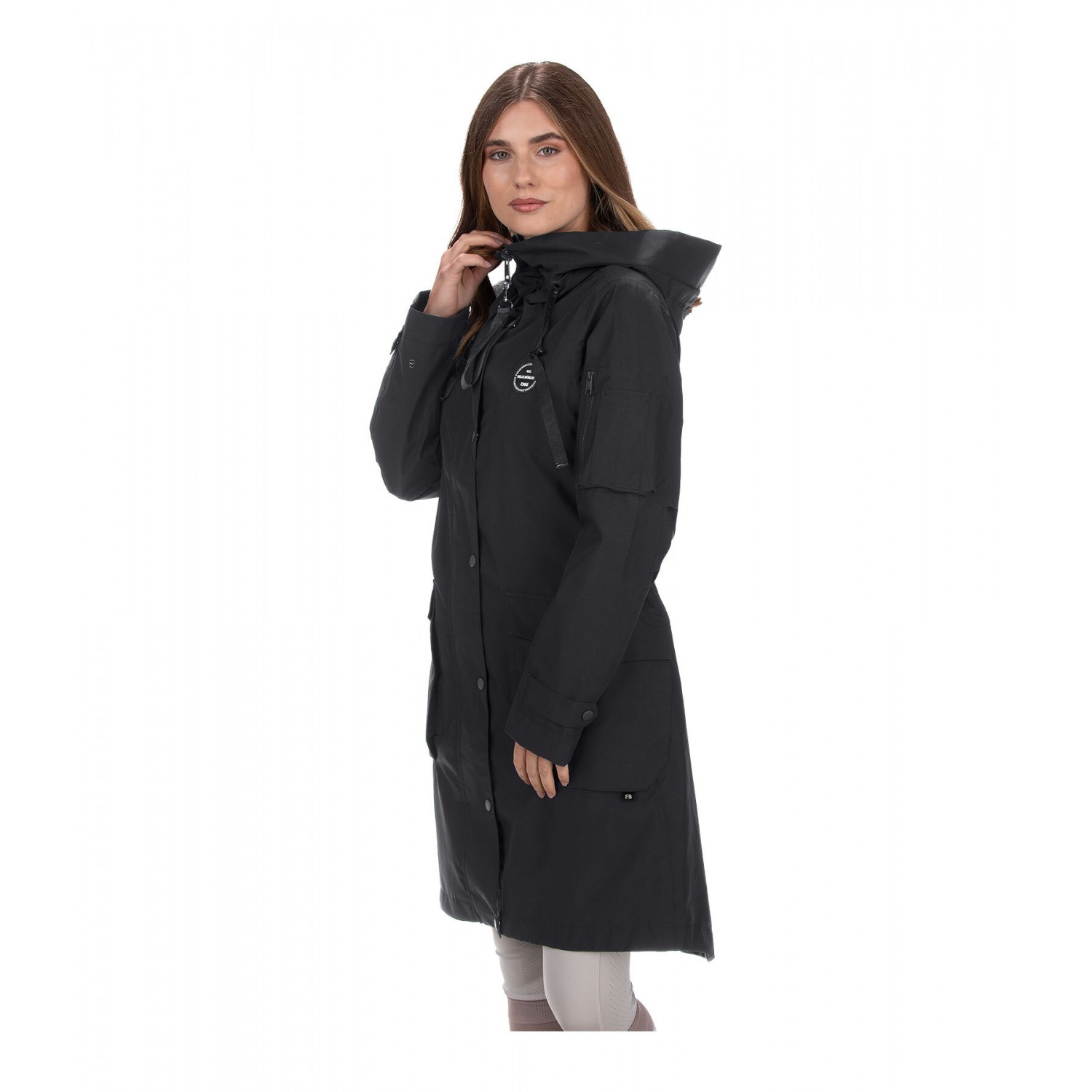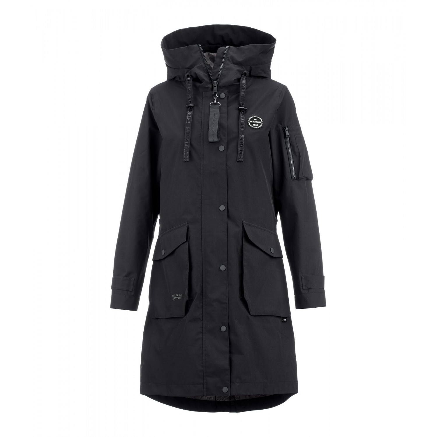 Повседневная с регулируемым капюшоном, который можно закрепить сзади. Очень удобный крой. Водонепроницаемая, ветрозащитная и дышащая. Скрытая двусторонняя молния, два больших накладных кармана с дополнительными боковыми карманами спереди, один карман на рукаве на молнии, один внутренний карман на молнии, регулируемая талия, регулируемые манжеты с эластичными ветрозащитными лентами и один длинный разрез с молнией сзади. 100% полиэстер.