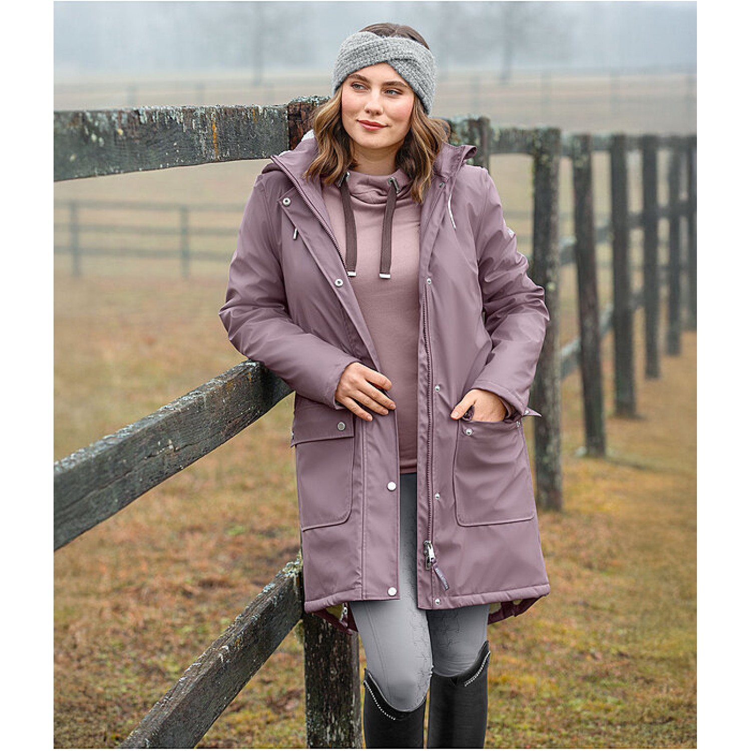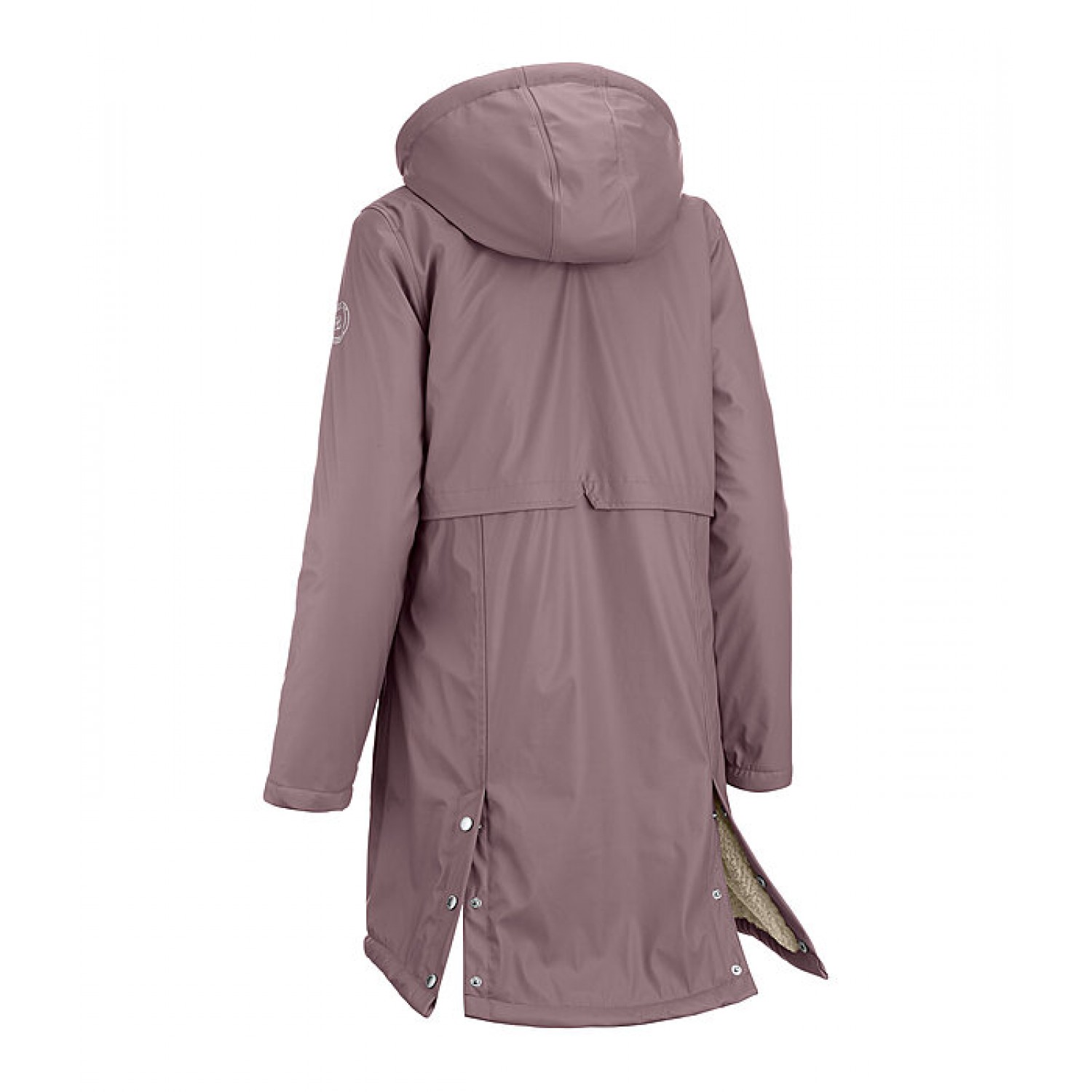 Супер стильный плащ с капюшоном и теплой внутренней частью из приятного мягкого плюша. Водо и ветрозащитный. Потайная двусторонняя молния спереди с защитой подбородка, 1 внутренний карман на молнии, 2 кармана с клапанами на кнопках спереди, регулируемый капюшон, который также имеет подкладку из плюшевого меха и может прикрепляться к спине, более длинный вырез сзади с 2 разрезы для верховой езды на кнопках, принт Felix Bühler на рукаве. Снаружи 100% полиуретан, внутри 100% полиэстер.