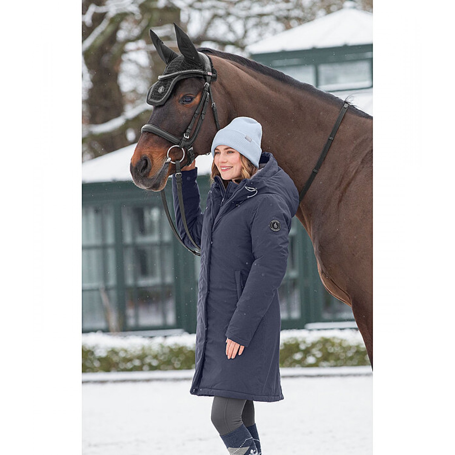 Длинное очень теплое зимнее пальто с очень высоким воротником и большим частично убирающимся капюшоном, который регулируется и может быть закреплен на спине. Водонепроницаемый, ветрозащитный и дышащий материал. Наполнитель из искусственного пуха, манжеты с эластичным поясом из трикотажного материала, 2 потайных передних кармана на молнии, потайная двусторонняя передняя молния с защитой подбородка, 1 разрез для верховой езды на молнии сзади и 1 открытый внутренний карман. Подкладка с тонким рельефным рисунком, значок Felix Bühler на рукаве. 100% полиэстер.