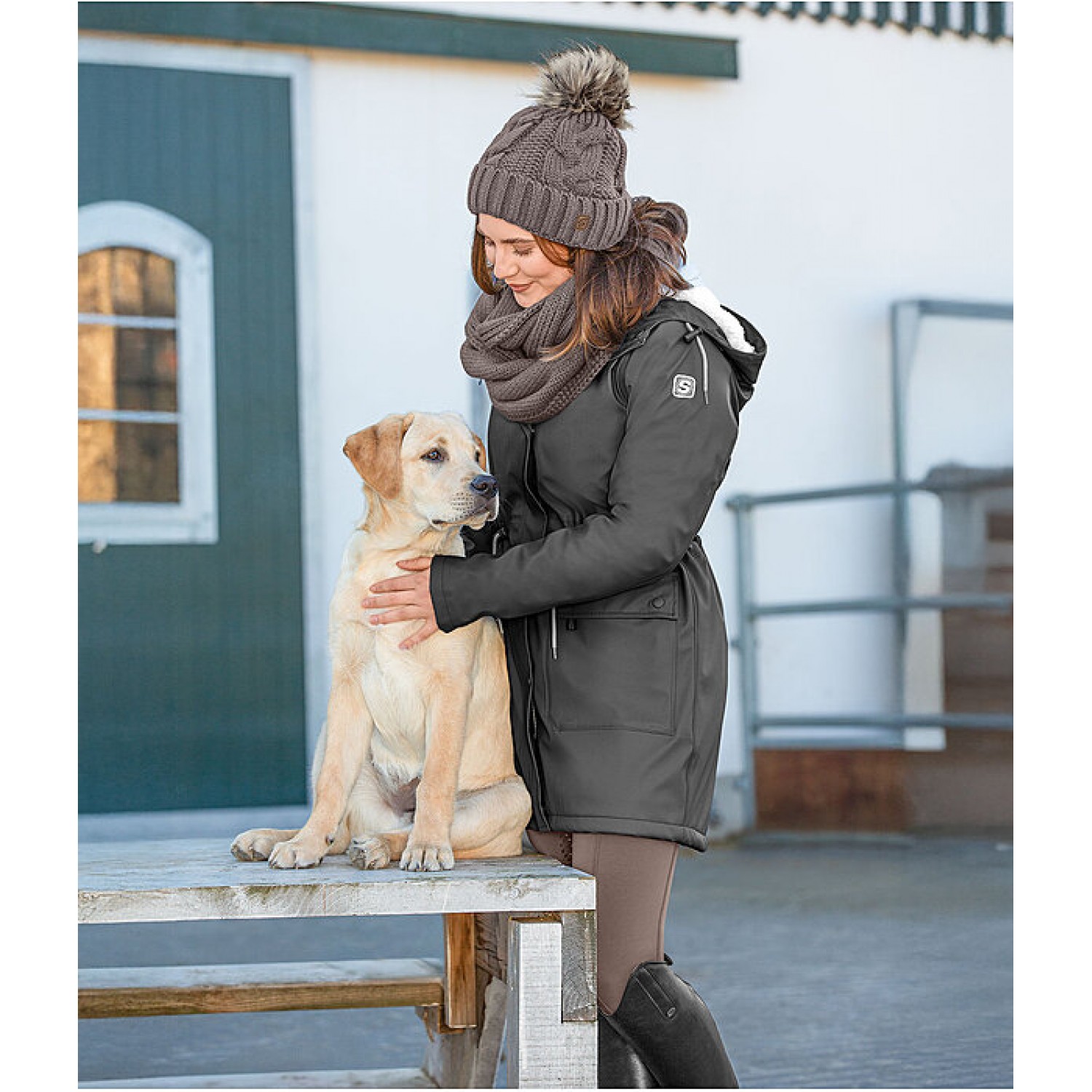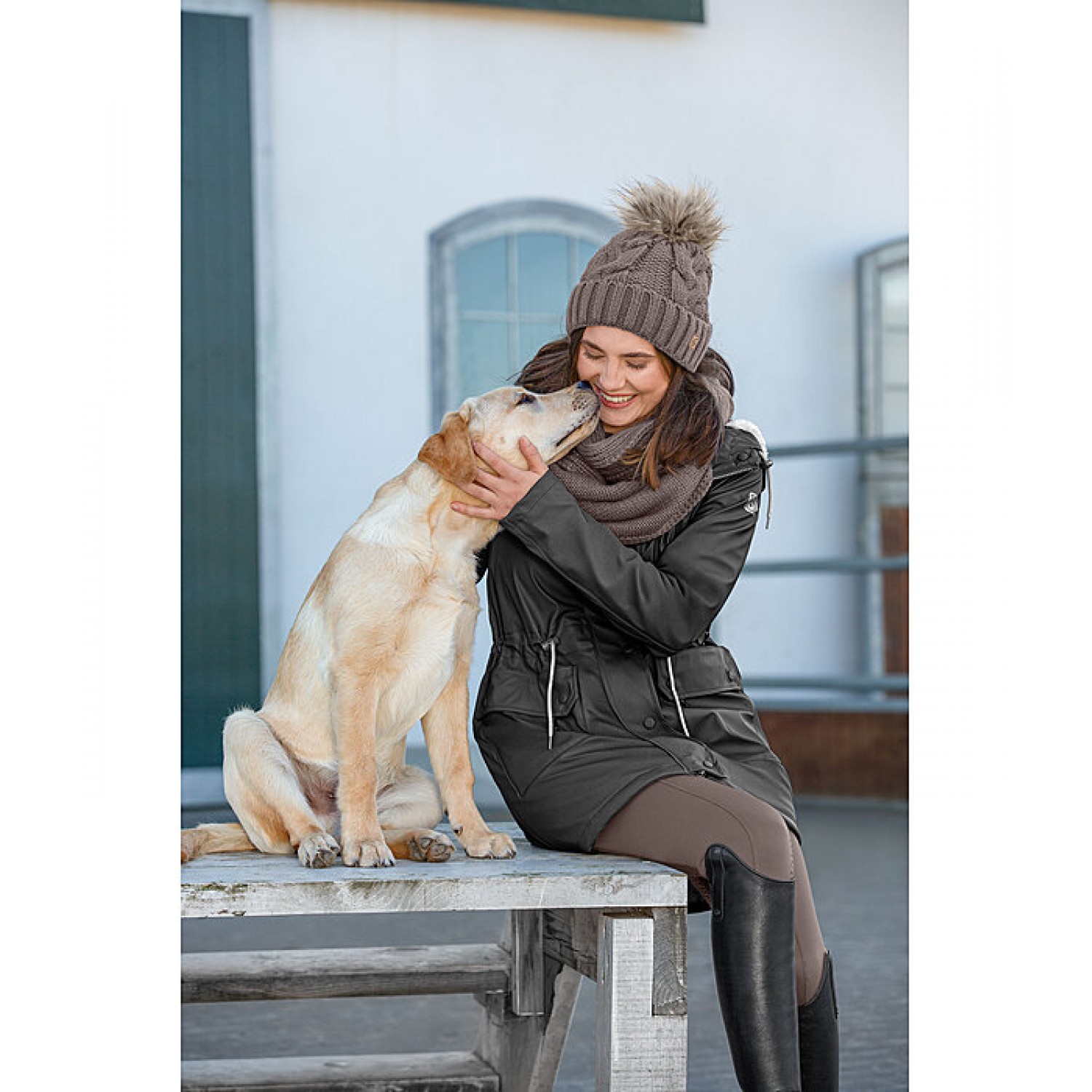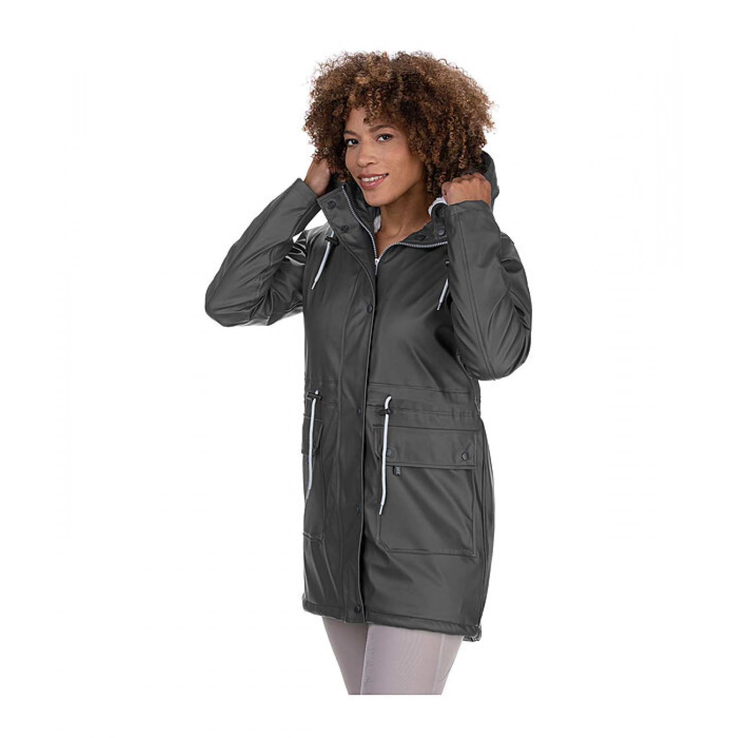Приятная, мягкая и теплая куртка от дождя с полной внутренней подкладкой из флиса. С большим регулируемым капюшоном, который можно увеличить в сильный дождь. Водонепроницаемый и ветрозащитный материал. Потайная двусторонняя молния спереди, 2 кармана с клапанами на кнопках спереди, регулируемая ширина талии, 1 разрез для верховой езды на кнопках сзади и принты STEEDS на рукавах и капюшоне. 100% полиуретан, внутри 100% полиэстер, флис Тедди.