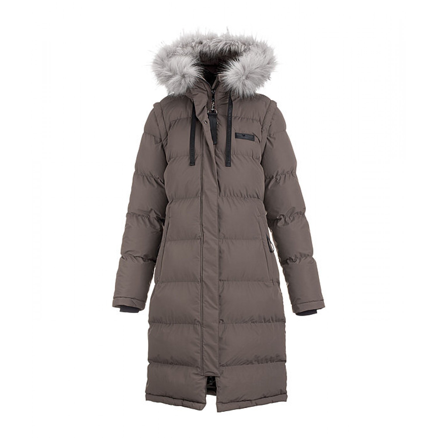 Шикарное пальто и длинный жилет в одном: теплое длинное пальто с рукавами, которые можно снять на молнии! Ветро- и водоотталкивающие свойства. Очень высокий регулируемый капюшон на подкладке из плюшевого меха можно прикрепить к спине, а воротник из искусственного меха можно снять с помощью кнопок. Мягкий наполнитель из искусственного пуха, потайная двусторонняя молния спереди с защитой подбородка и 2 потайных передних кармана на молнии на подкладке из мягкого флиса. Манжеты с эластичной защитой от ветра и длинным разрезом на подкладке с молнией сзади. Регулируемая ширина талии и высококачественный значок Felix Bühler на груди. 100% полиэстер.
