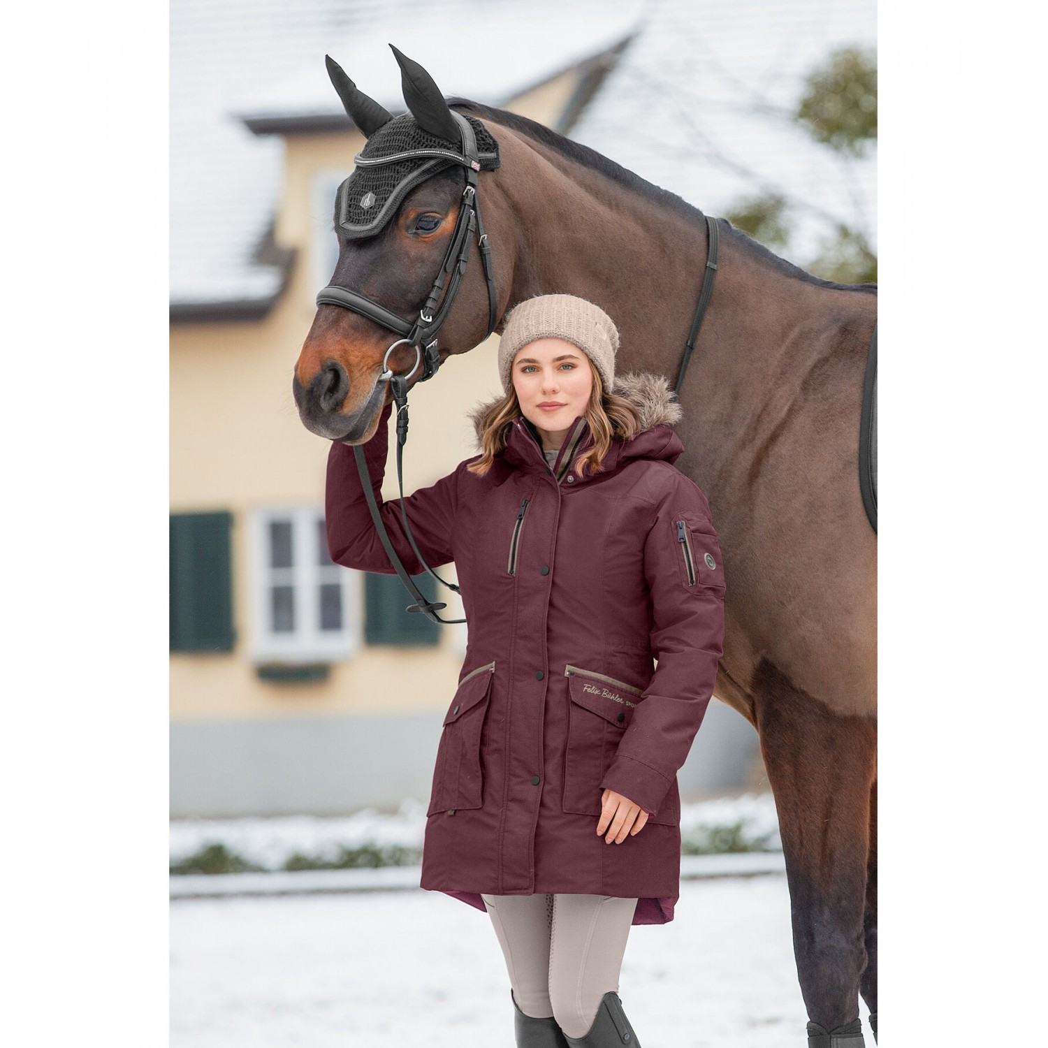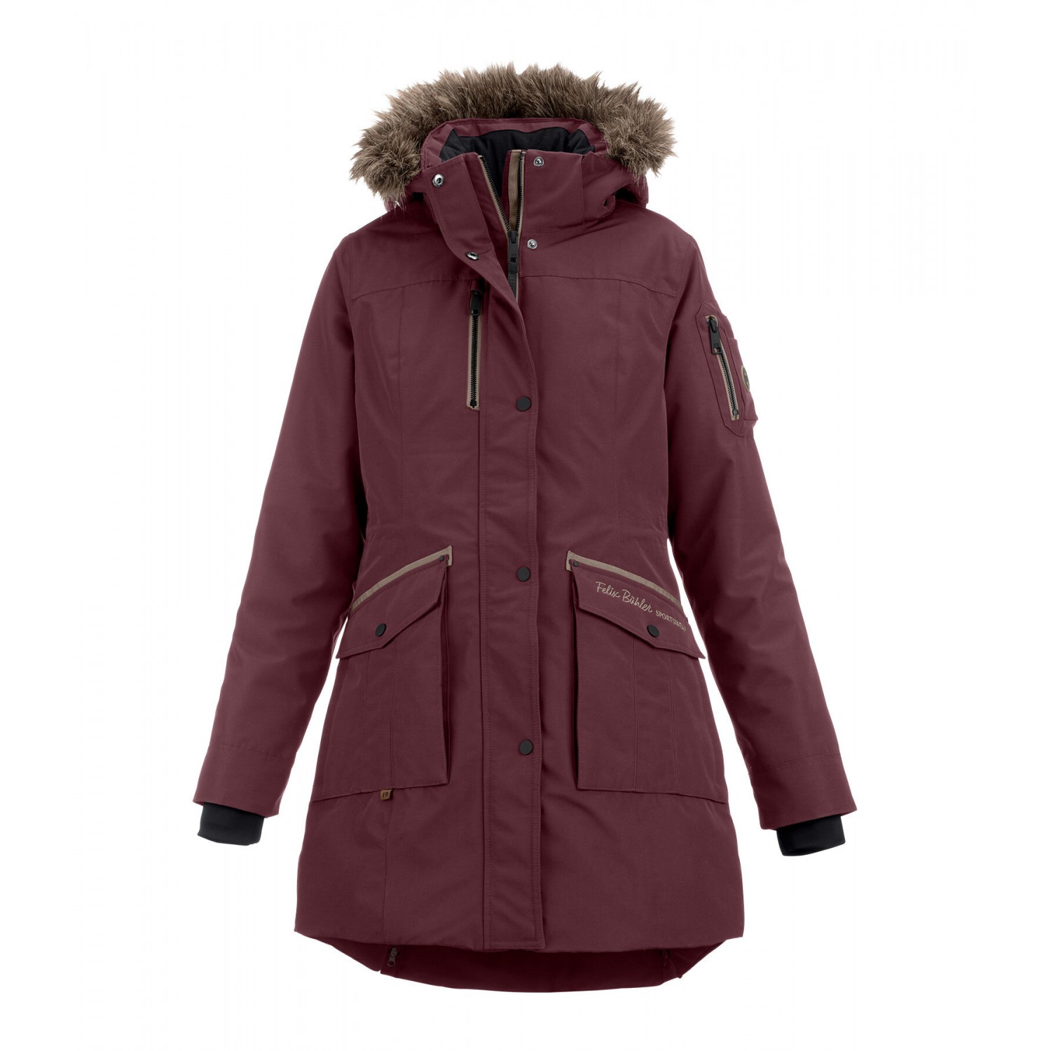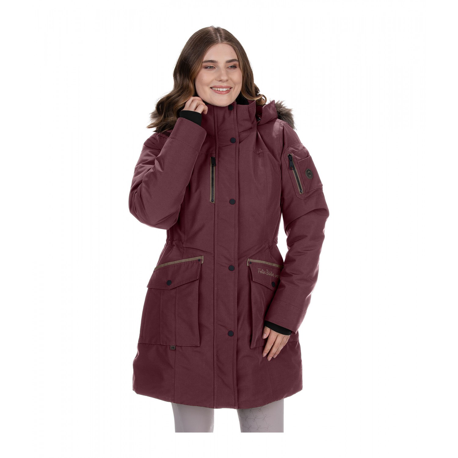 Очень тёплая, прочная и водонепроницаемая парка с регулируемым отстёгивающимся капюшоном и отстёгивающимся на молнии воротником из искусственного меха, который застёгивается сзади. Водонепроницаемая, ветрозащитная, дышащая. Теплый стёганый наполнитель из мягкого искусственного пуха. Два вместительных кармана с клапанами, включая боковые, один нагрудный карман на молнии, один карман на рукаве на молнии, один внутренний карман на молнии, потайная двусторонняя молния спереди, два вентиляционных отверстия для верховой езды на подкладке с молниями сзади, регулируемая талия и эластичные манжеты. Эмблема и вышивка Felix Bühler. 100% полиэстер.