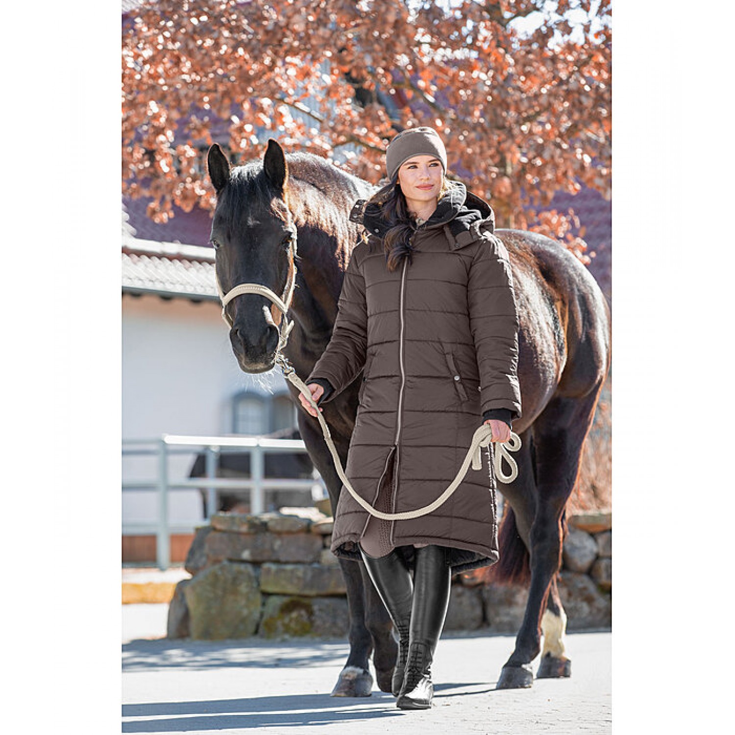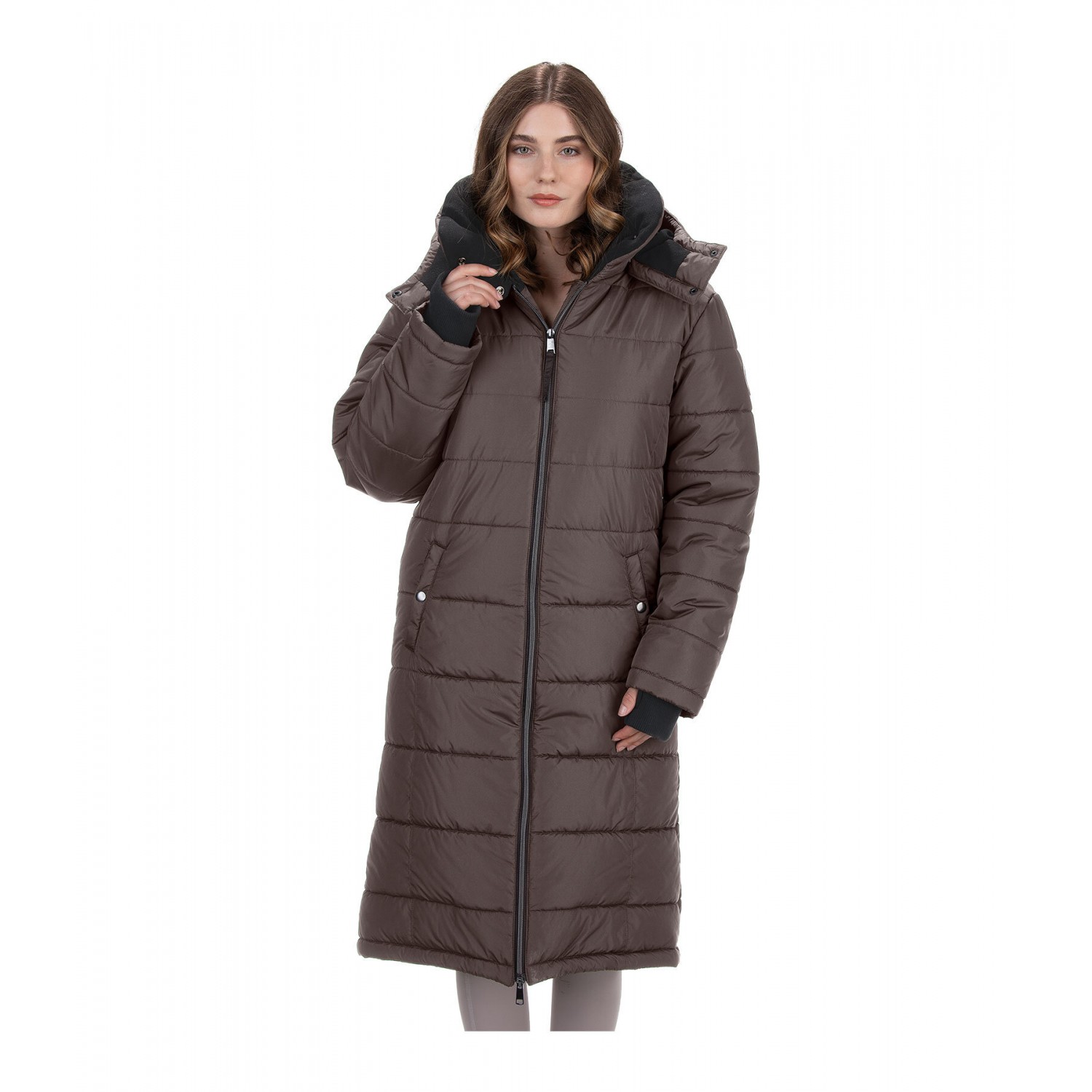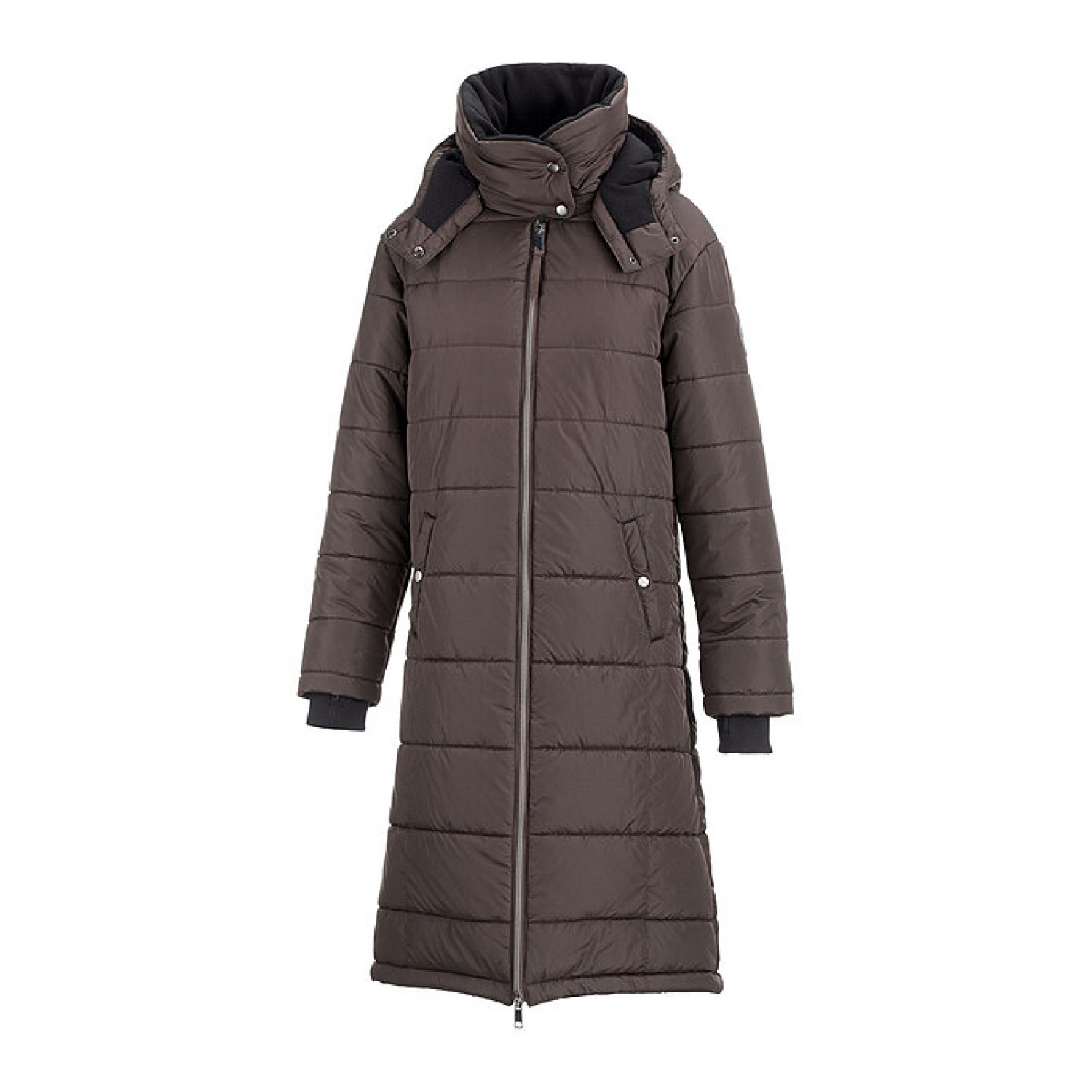 Теплое пальто со съемным капюшоном, проложенным мягким флисом. Манжеты с отверстием для большого пальца. Приятный, высокий воротник, длинный разрез с молнией и дополнительной защитой от дождя. Скрытая двухсторонняя передняя молния с защелкой, петли для ног, два просторных передних кармана, 1 внутренний карман на молнии. Очень теплый наполнитель. 100% полиэстер.