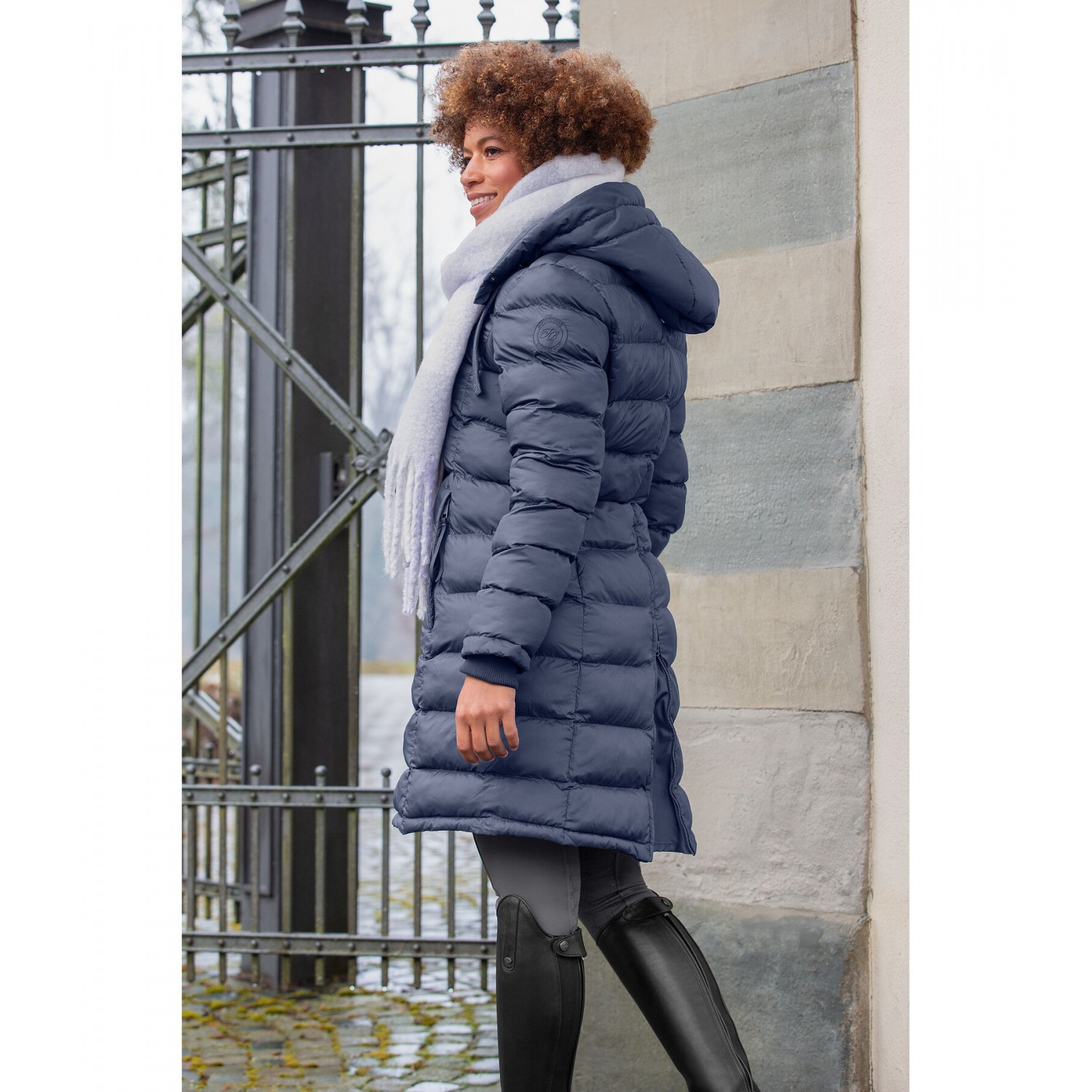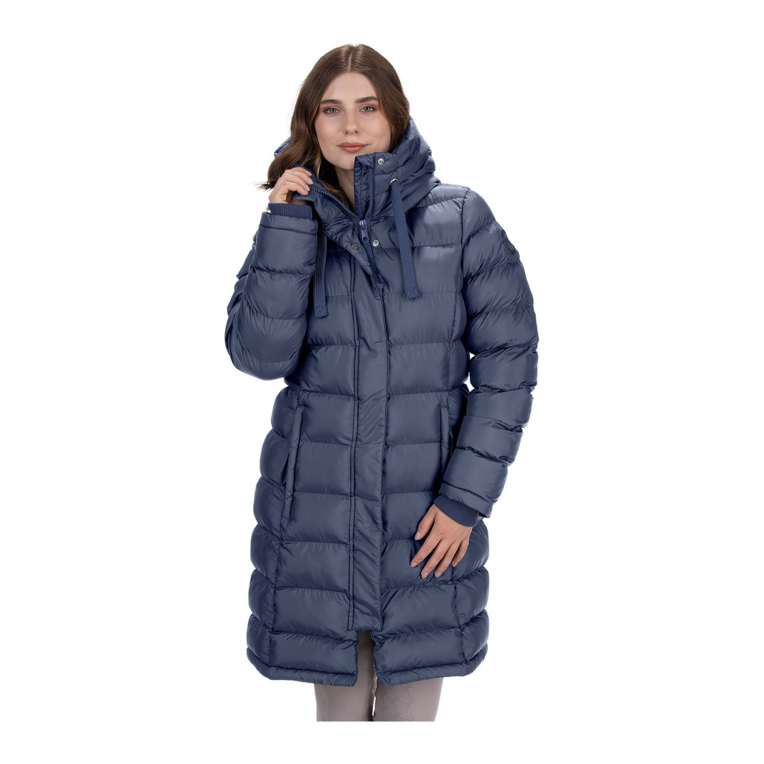 Очень теплое, длинное и суперсовременное пальто для верховой езды! Мягкий наполнитель из имитации пуха, очень высокий, регулируемый, а также утепленный капюшон, который можно прикрепить к спине. Потайная двусторонняя молния спереди, 2 потайных кармана на молнии спереди, на подкладке из мягкого флиса. Ветрозащитный дополнительный утеплитель. Трикотажные манжеты и длинный разрез для верховой езды на подкладке с молнией сзади. Качественная вышивка Felix Bühler на рукаве.
