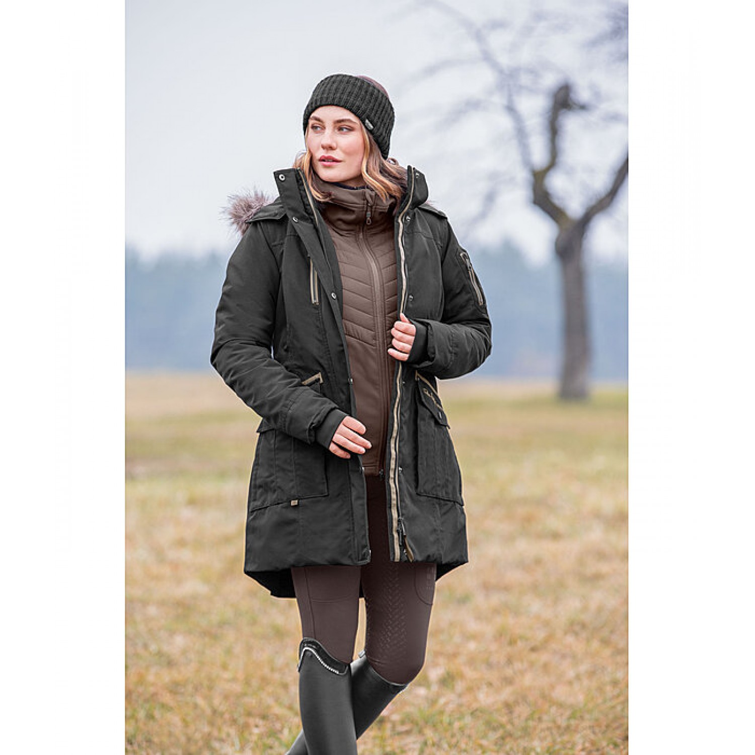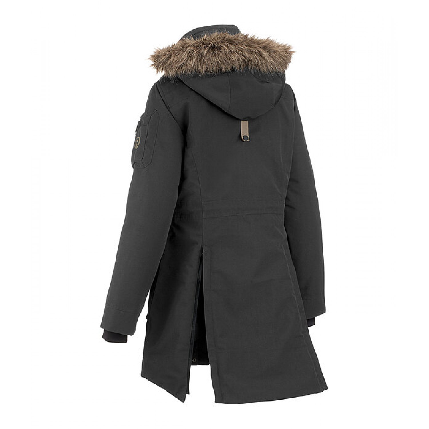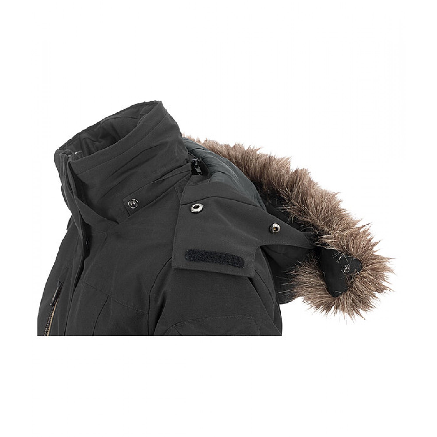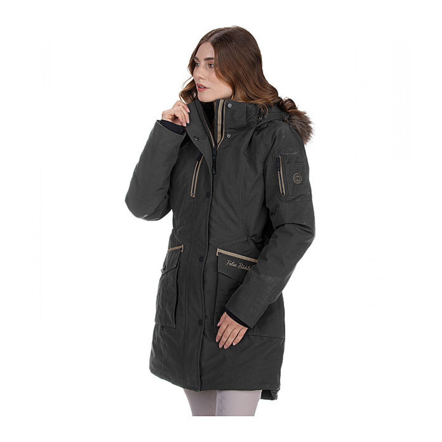Очень тёплая, прочная и водонепроницаемая парка с регулируемым отстёгивающимся капюшоном и отстёгивающимся на молнии воротником из искусственного меха, который застёгивается сзади. Водонепроницаемая, ветрозащитная, дышащая. Теплый стёганый наполнитель из мягкого искусственного пуха. Два вместительных кармана с клапанами, включая боковые, один нагрудный карман на молнии, один карман на рукаве на молнии, один внутренний карман на молнии, потайная двусторонняя молния спереди, два вентиляционных отверстия для верховой езды на подкладке с молниями сзади, регулируемая талия и эластичные манжеты. Эмблема и вышивка Felix Bühler. 100% полиэстер.