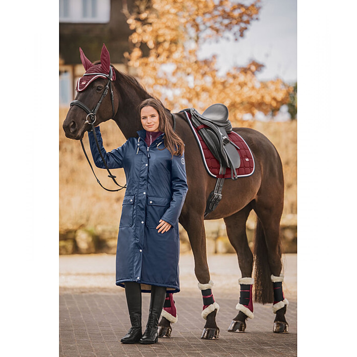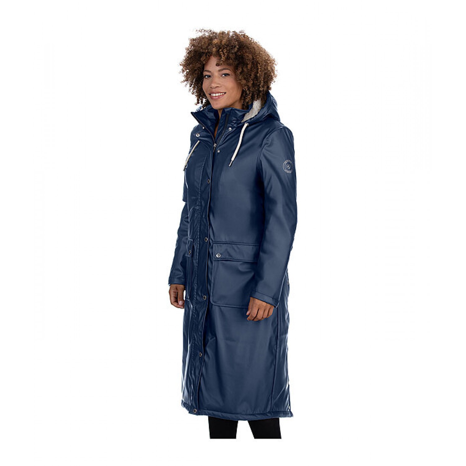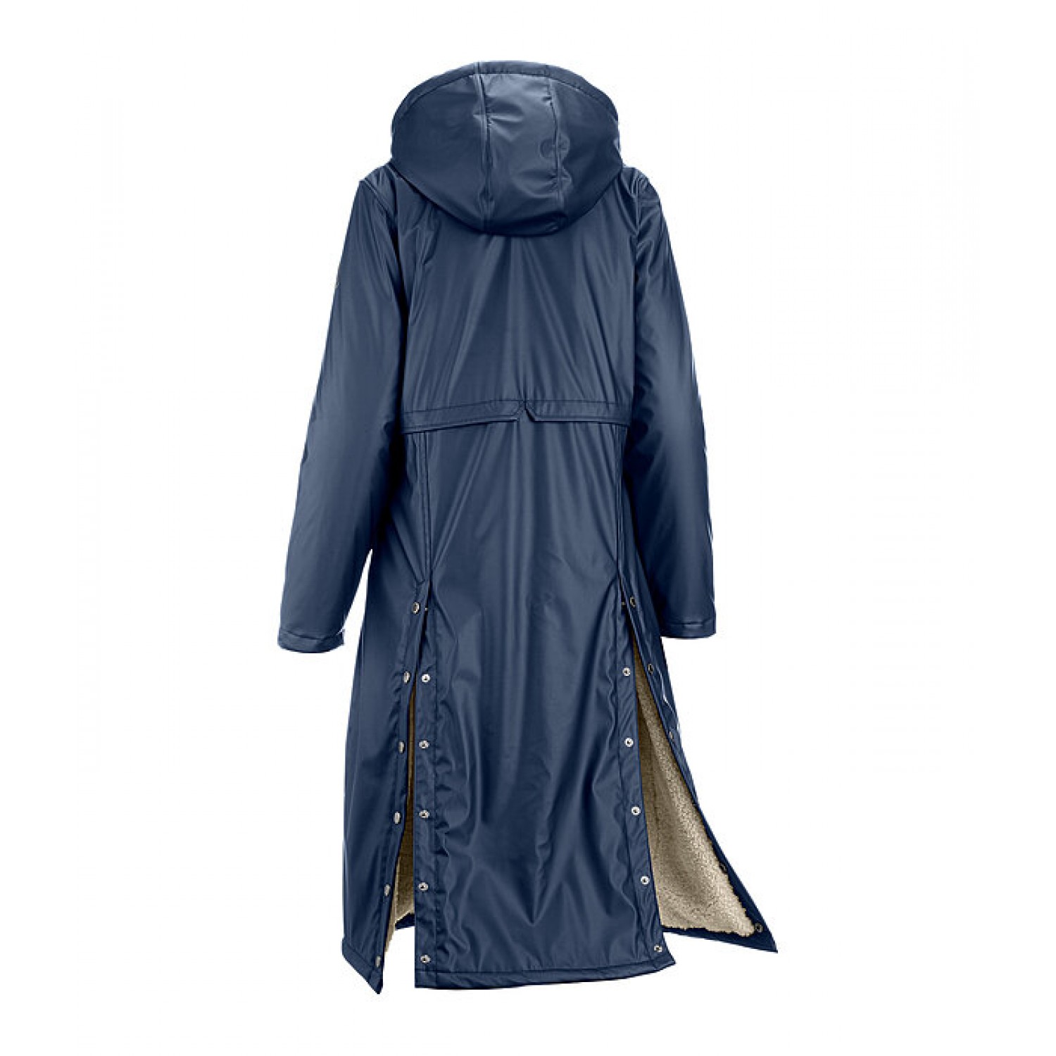 Этот плащ с капюшоном и мягкой, приятной на ощупь флисовой подкладкой. Водонепроницаемый и ветроустойчивый. Особенности: потайная двусторонняя молния спереди с защитой подбородка, один внутренний карман на молнии, два передних кармана с клапанами на кнопках, регулируемый капюшон (также на подкладке из флиса), который можно застегнуть сзади, два удлиненных вентиляционных отверстия для верховой езды на кнопках, принт Felix Bühler на рукаве. Внешний материал: 100% полиуретан, внутренний материал: 100% полиэстер.