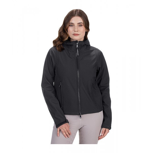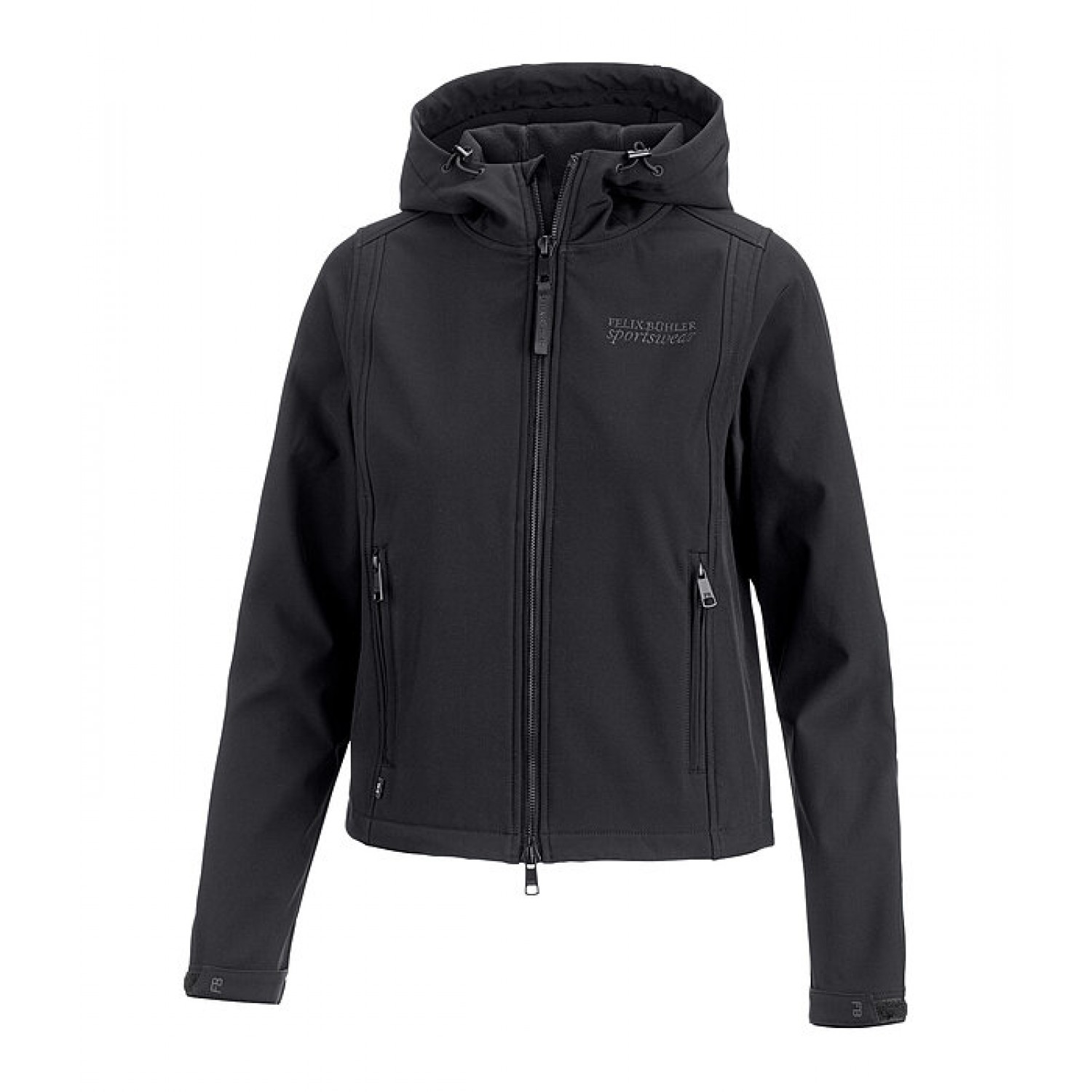Модная укороченная куртка из материала Softshell. Ветрозащитная и водоотталкивающая. Регулируемые капюшон, подол и манжеты; водонепроницаемая двухсторонняя молния спереди с подкладкой и защитой подбородка; два потайных кармана на молнии спереди. Мягкая флисовая подкладка. Вышивка Felix Bühler спереди. 90% полиэстер, 10% эластан.