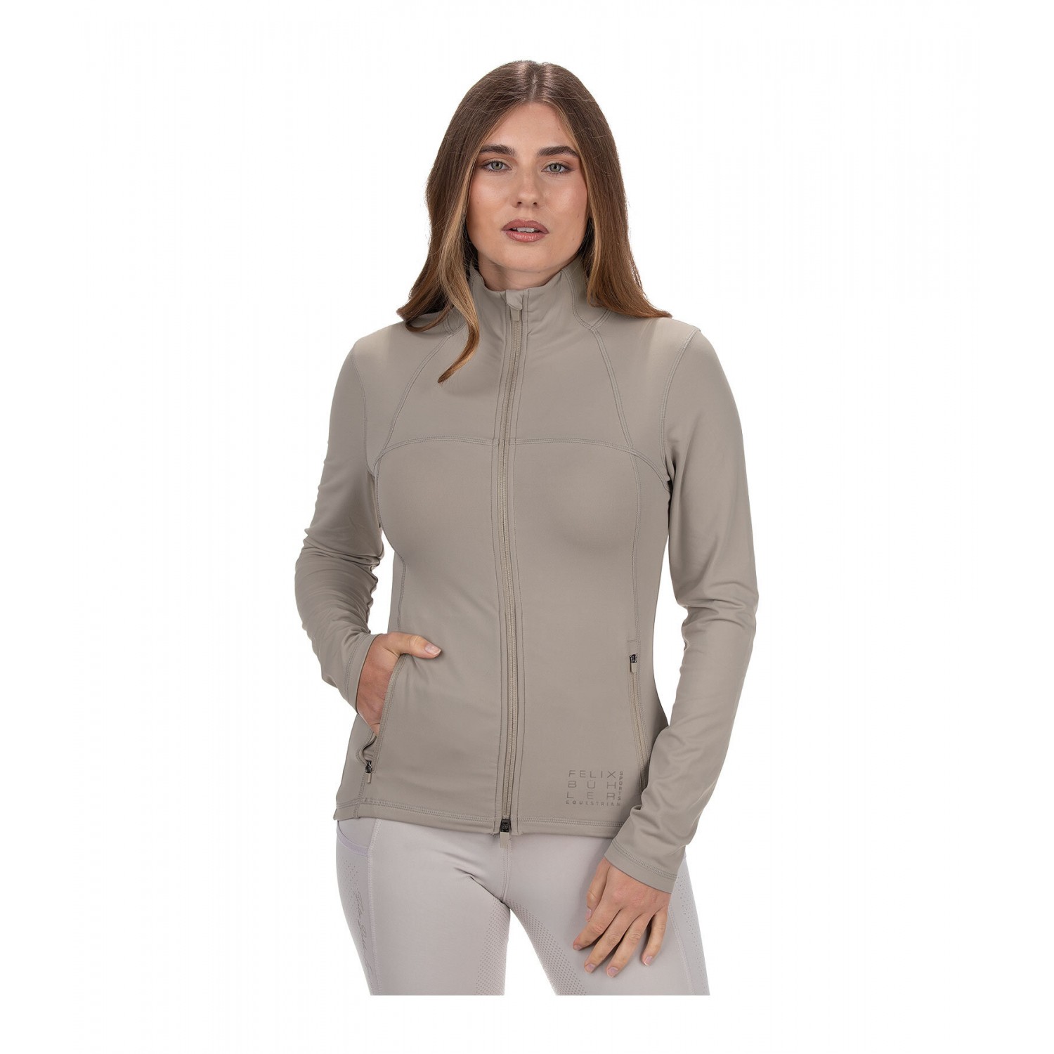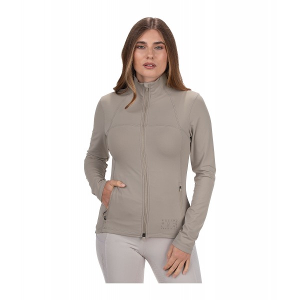 Спортивная, легкая, эластичная куртка с высоким воротником-стойкой. Прозрачные силиконовые логотипы на передней и задней части. Дышащая и быстросохнущая. Видимая декоративная строчка вдоль швов. Двусторонняя передняя молния с защитой подбородка и два передних кармана на молнии. 81% нейлон, 19% эластан.