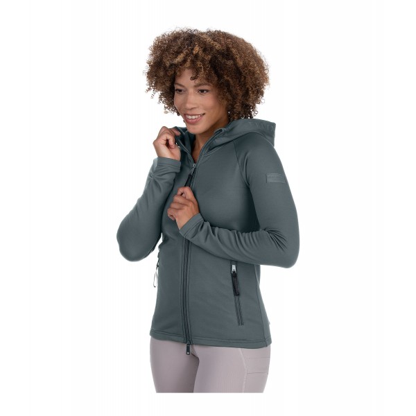 Спортивная, эластичная куртка с капюшоном. Дышащая и быстросохнущая. Мягкая подкладка, двусторонняя молния с защитой подбородка, два кармана на молнии. Изящный логотип Felix Bühler. Состав: 95% полиэстер, 5% эластан.