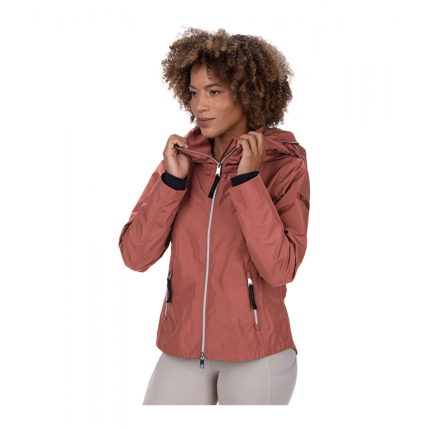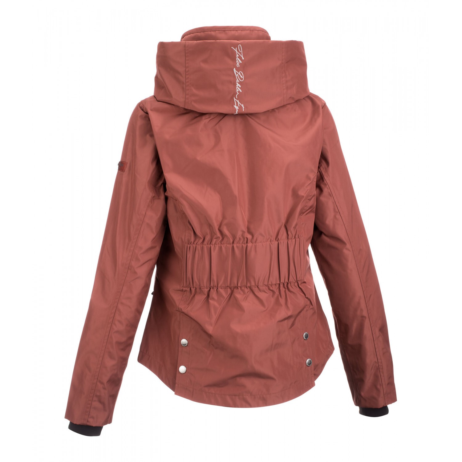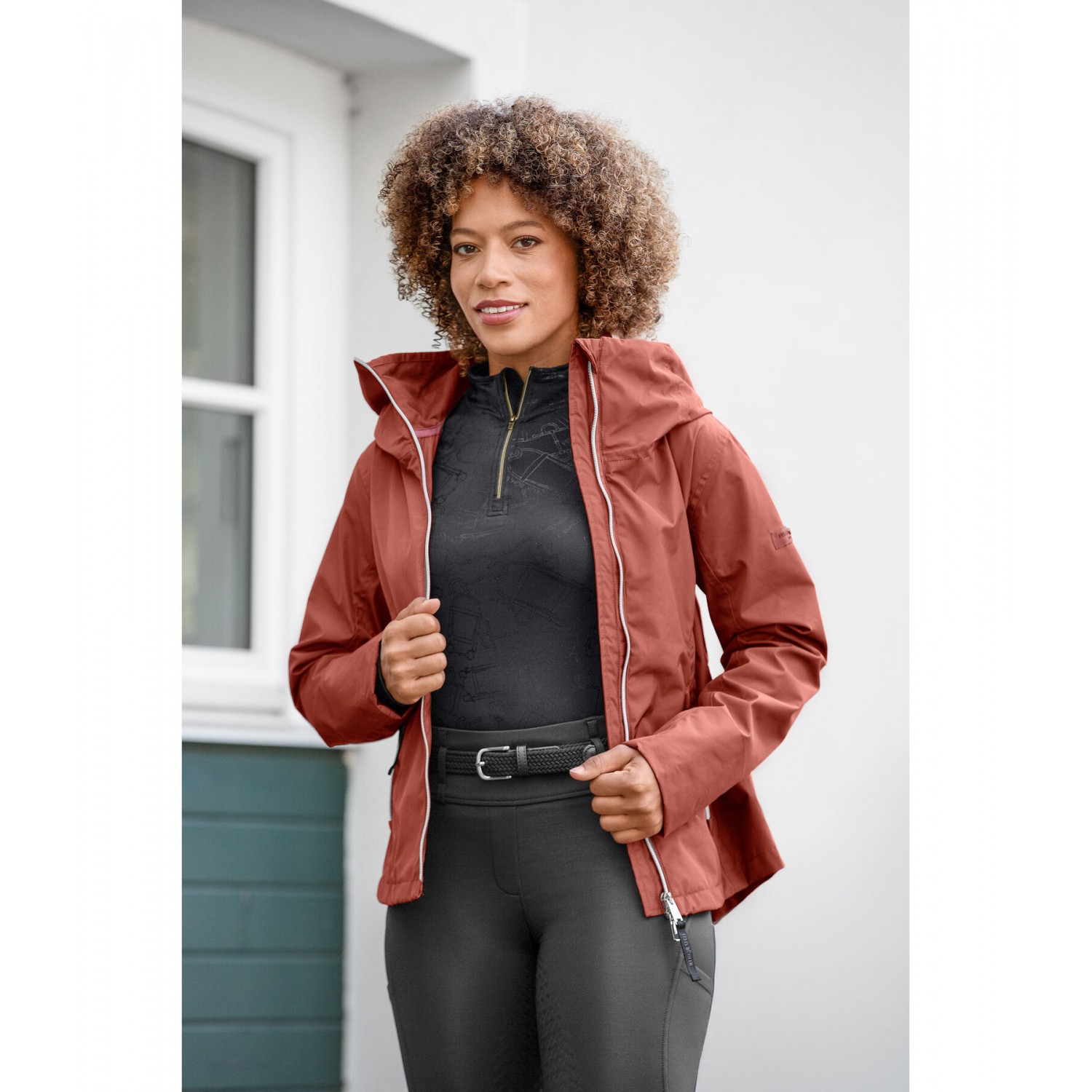 Элегантная функциональная куртка с отличной посадкой! Водонепроницаемый, ветронепроницаемый и дышащий материал. Двойной воротник, капюшон, убирающийся в объемный наружный воротник, 2 разреза для верховой езды на кнопках и широкая резинка сзади на талии. Подкладка, двухсторонняя молния спереди с защитой подбородка, 2 передних кармана на молнии и эластичные манжеты. 100% полиэстер.