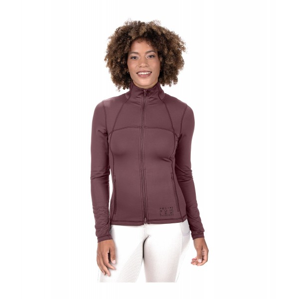 Спортивная, легкая, эластичная куртка с высоким воротником-стойкой. Прозрачные силиконовые логотипы на передней и задней части. Дышащая и быстросохнущая. Видимая декоративная строчка вдоль швов. Двусторонняя передняя молния с защитой подбородка и два передних кармана на молнии. 81% нейлон, 19% эластан.