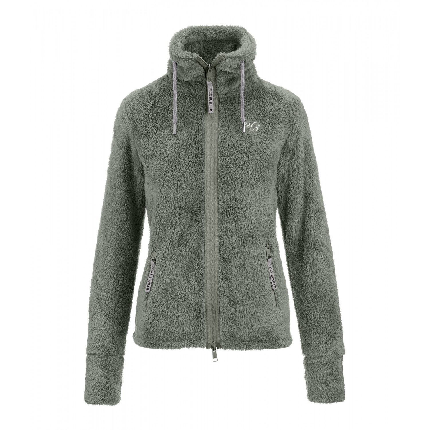 Очень пушистая флисовая куртка с высоким ворсом, имитирующая уютный мех. Очень высокий, очень теплый воротник, регулируемый размер воротника, двусторонняя молния спереди на подкладке, 2 передних кармана на молнии, отверстия для больших пальцев в широких манжетах и вышивка Felix Bühler на груди. 100% полиэстер.