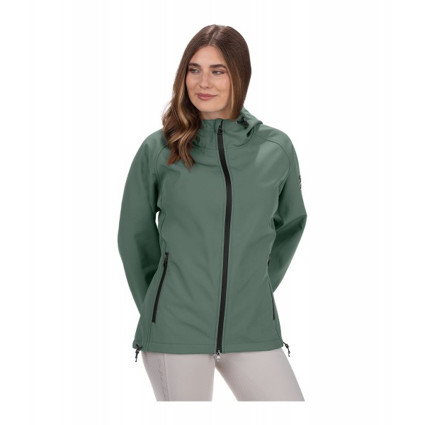 Идеально подходит для круглогодичного ношения! Эта эластичная, ветрозащитная и водоотталкивающая куртка из софтшелла имеет высокий воротник и капюшон, который застегивается сзади на кнопки. Капюшон, нижний край и манжеты регулируются, а также имеется подкладка, водонепроницаемая двусторонняя молния спереди с защитой подбородка и два водонепроницаемых передних кармана на молнии. Подкладка выполнена из флиса. 94% полиэстер, 6% эластан.