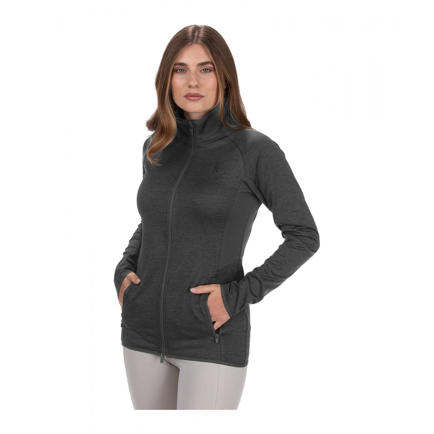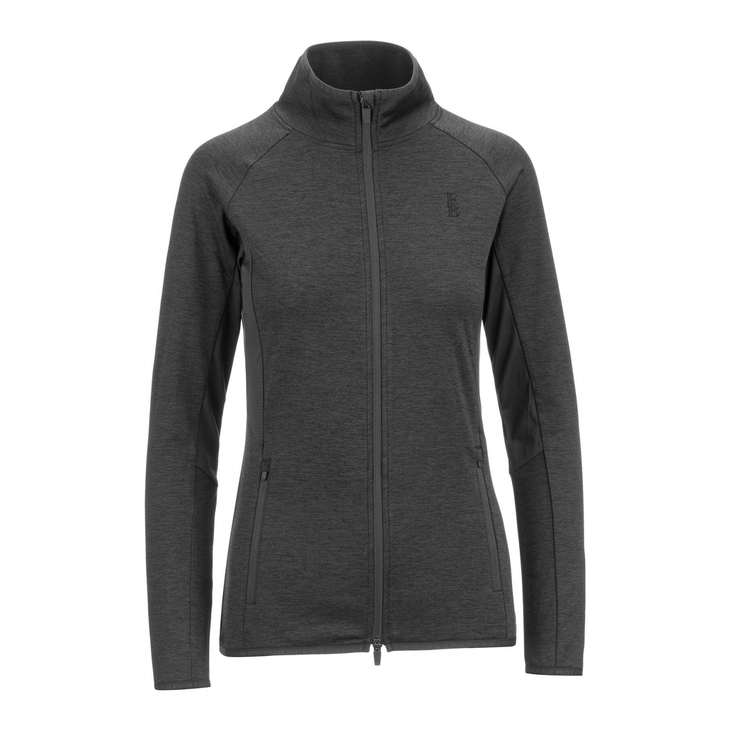 Мягкая, эластичная функциональная куртка меланжевого цвета с дышащими сетчатыми вставками под мышками, мягкой внутренней подкладкой и высоким воротником-стойкой. Дышащая и быстросохнущая. Имеет подкладку, двустороннюю молнию спереди с защитой подбородка и два передних кармана на молнии. Ненавязчивая вышивка и принт с логотипом Felix Bühler. 94% полиэстер, 6% эластан.