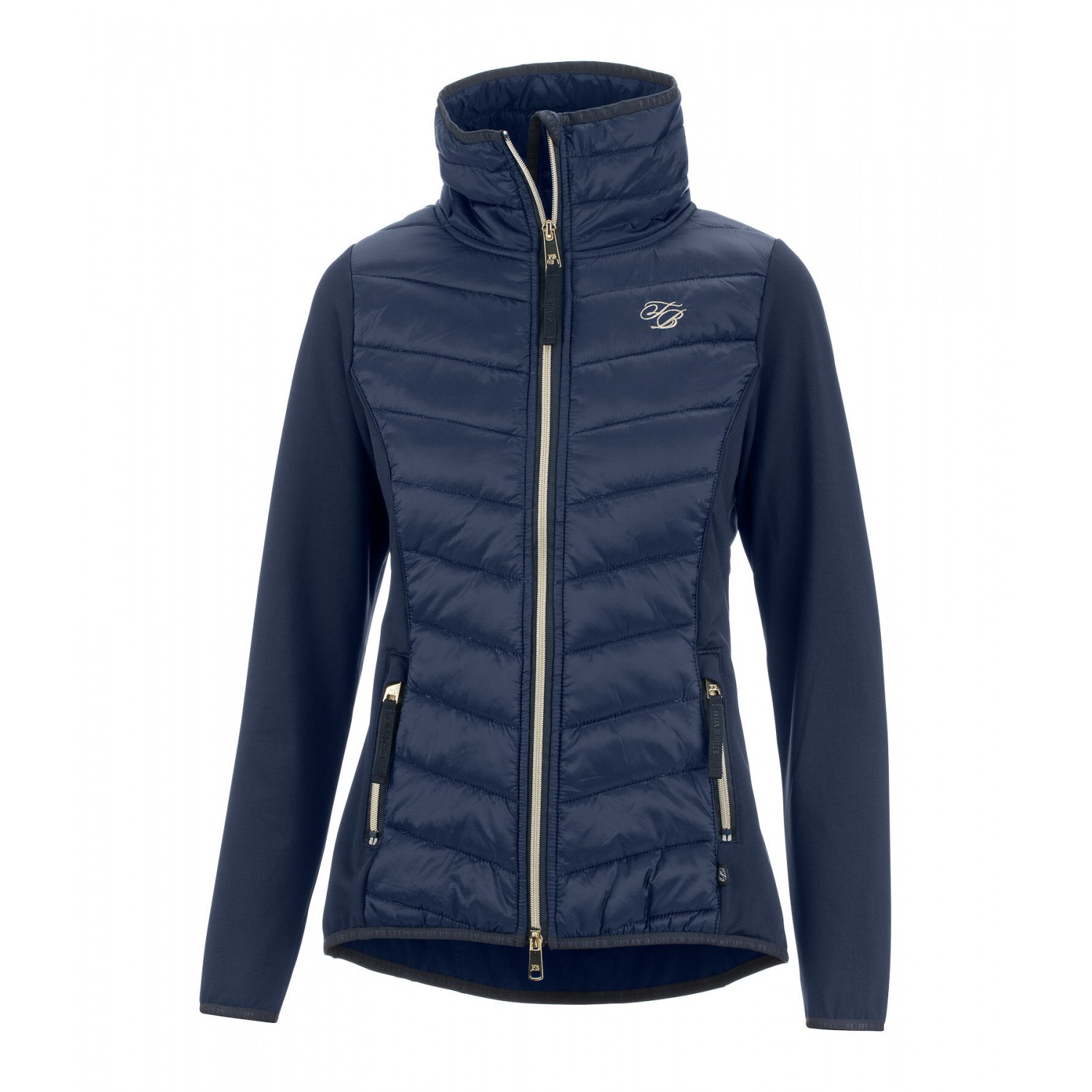 Удобная куртка из эластичного материала на рукавах и сзади, передяя часть и воротник из высококачественного стеганого нейлона с подкладкой. 2 передних кармана на молнии, двусторонняя молния спереди с защитой подбородка и вышивка Felix Bühler на груди. Эластичные манжеты, пояс и воротник с надписью Felix Bühler. Передняя часть 100 % нейлон, эластичный материал 90 % полиэстер, 10 % эластан.