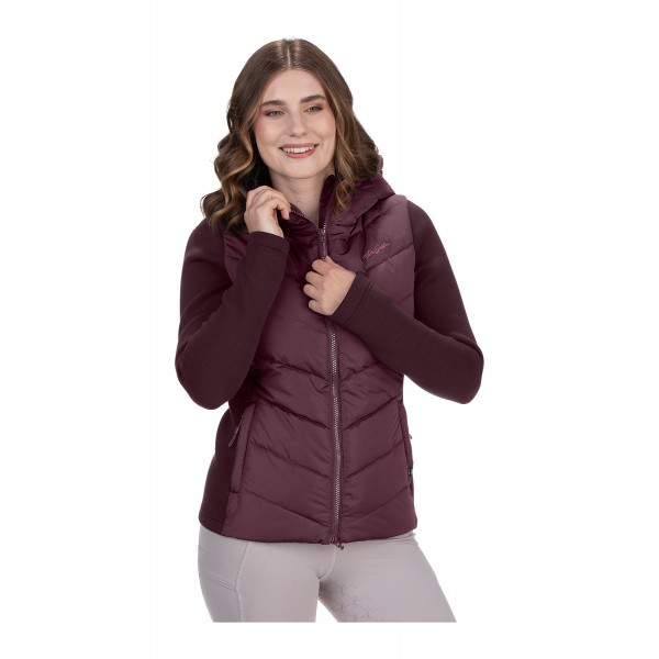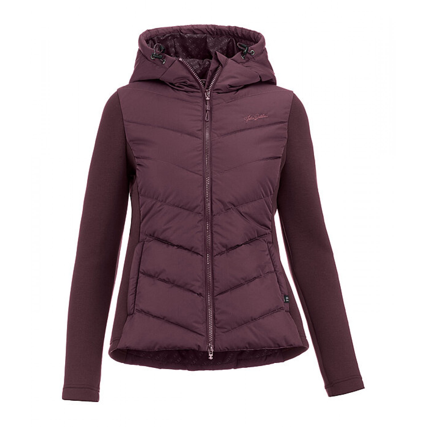 Стильная комбинированная куртка, сочетающая два материала для оптимальной свободы движений и комфорта. Передняя часть, спинка и капюшон выполнены из утеплённого материала с мягкой подкладкой. Рукава и боковые вставки выполнены из очень мягкого эластичного материала. Регулируемый капюшон застёгивается сзади. Особенности: двусторонняя молния на подкладке с защитой подбородка, два потайных кармана на молнии спереди и вышивка Felix Bühler. Стёганый материал: 100% полиэстер; эластичный материал: 65% полиэстер, 30% вискоза, 5% эластан.