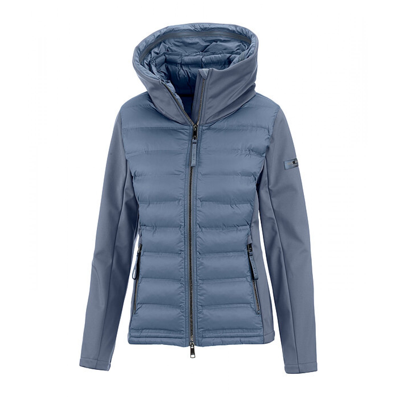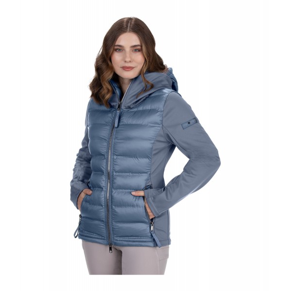 Фантастическое сочетание эластичного софтшелла и нейлона с супермягким пуховым наполнителем спереди и сзади. Ветрозащита. Двойной воротник и стеганый капюшон в большом наружном воротнике на молнии, проклеенные швы, двусторонняя молния на подкладке с защитой подбородка, два кармана на молнии спереди. Изысканные логотипы на рукавах и воротнике. Передняя часть, спинка, внутренняя часть воротника и капюшон: 100% нейлон; софтшелл: 92% полиэстер, 8% эластан.