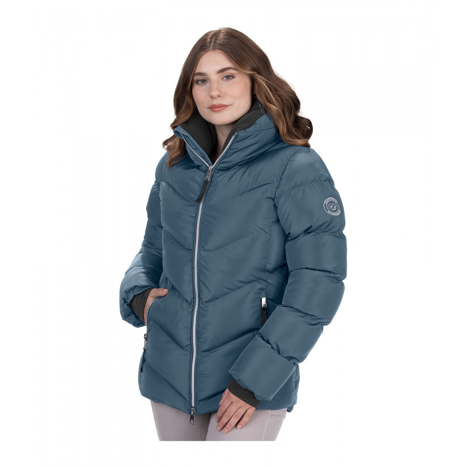Элегантная стеганая куртка с очень высоким, объёмным, тёплым воротником из мягкого флиса. Особенности: тёплый, мягкий, похожий на пух, наполнитель, эластичные ветрозащитные манжеты, двусторонняя молния спереди с защитой подбородка, два передних кармана на молнии с мягкой флисовой подкладкой и один внутренний карман на молнии. Удлинённая спинка. Вышитый логотип Felix Bühler на рукаве. 100% полиэстер.