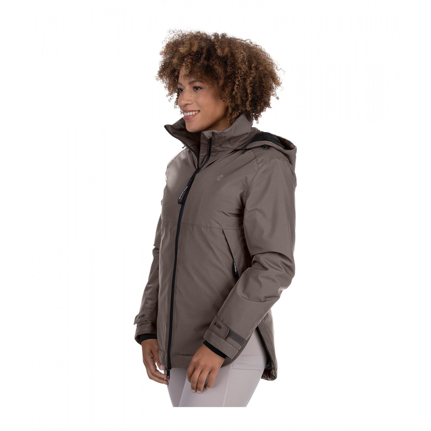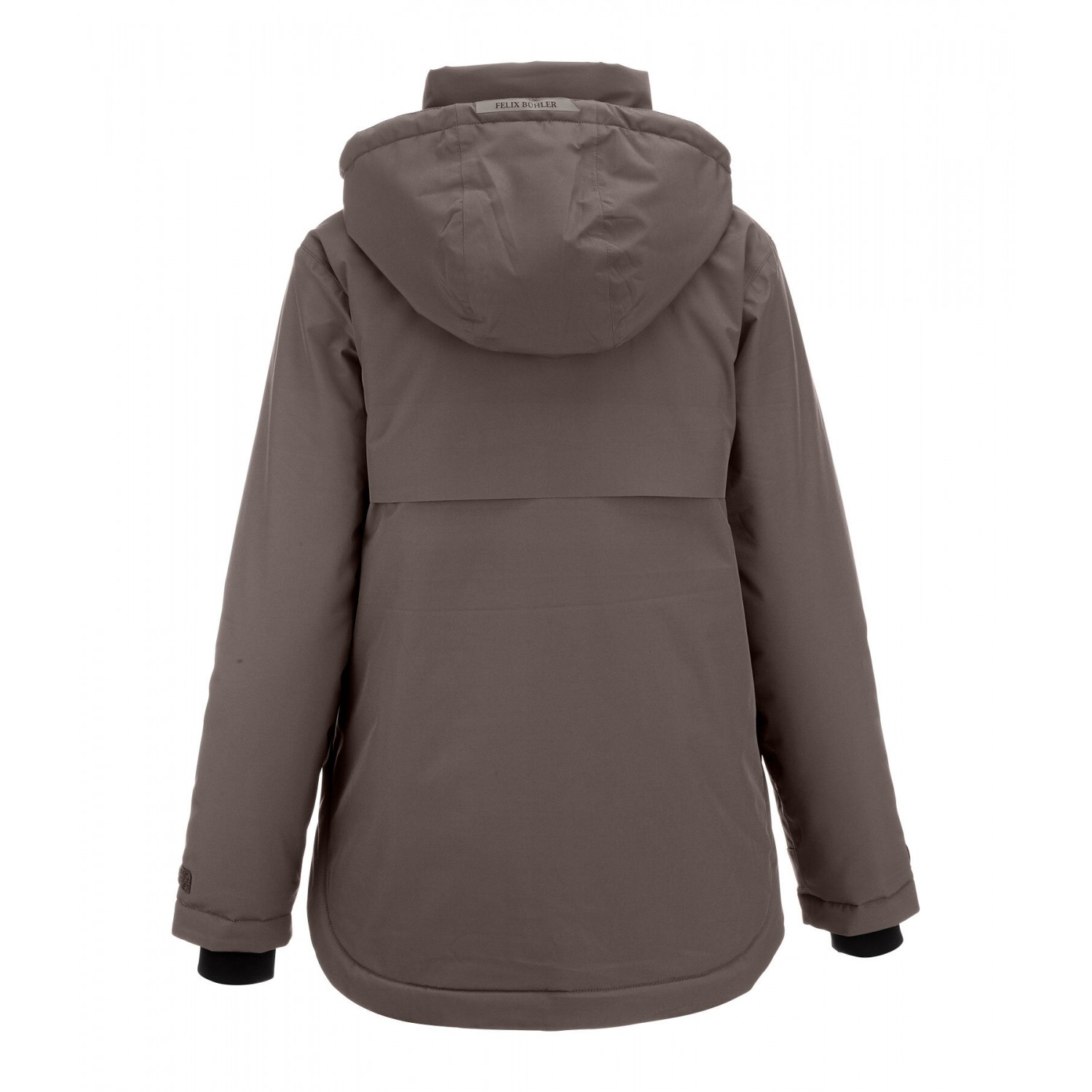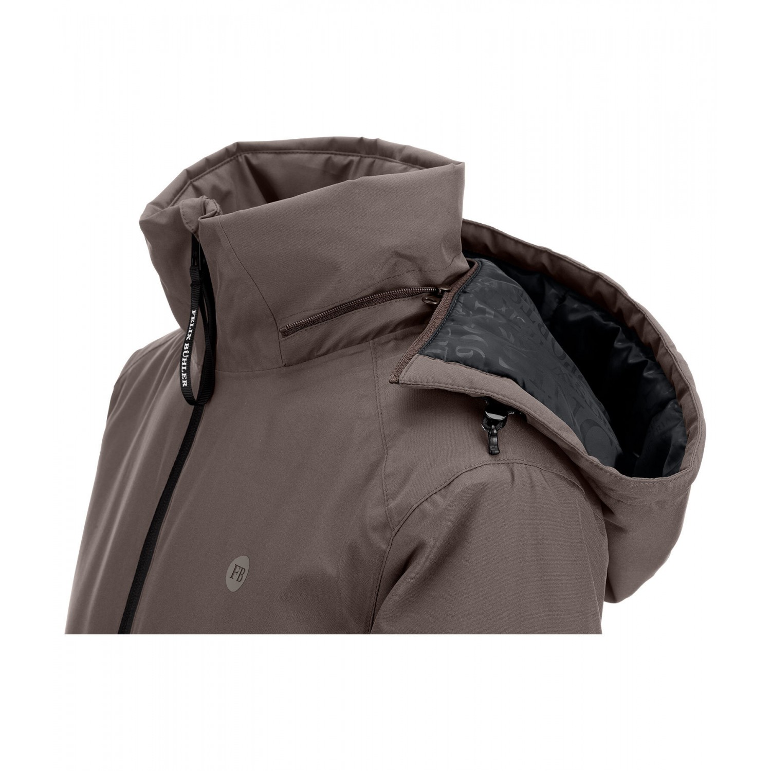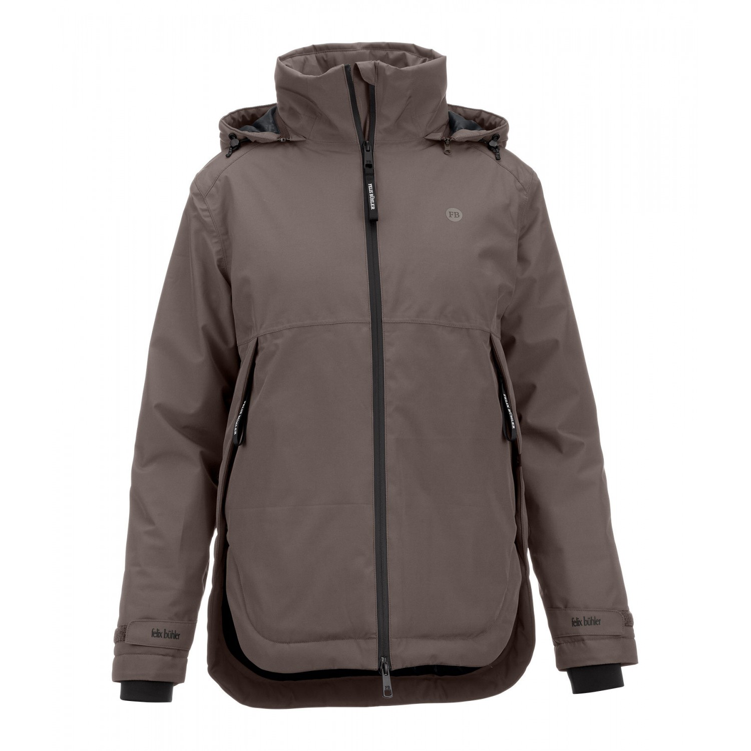 Водонепроницаемая, ветронепроницаемая, дышащая куртка на подкладке с высоким воротником и съемным регулируемым капюшоном, который также можно прикрепить к спине с помощью кнопки. Водонепроницаемая двусторонняя молния на подкладке, 2 потайных кармана на молнии спереди, 1 внутренний карман на молнии и регулируемые рукава с эластичной ветрозащитой. Кнопки с каждой стороны, удлиненная сзади. Принты Felix Bühler на рукавах, капюшоне и регулируемой ширине рукавов. 100% полиэстер.