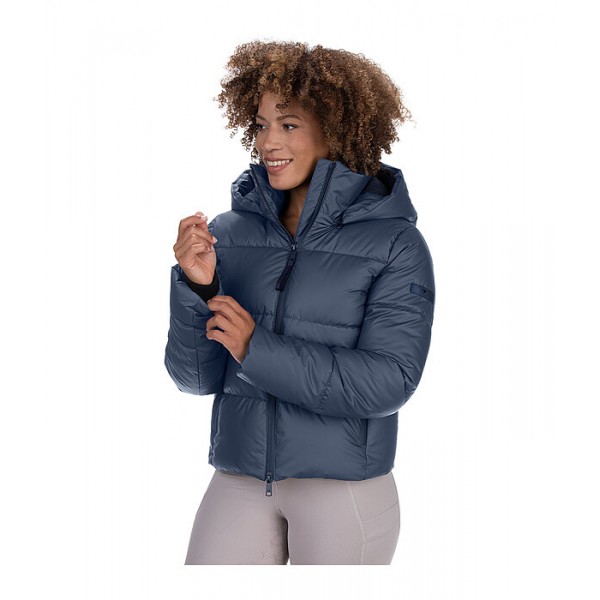 Модная короткая стеганая куртка с воротником стойкой и съемным капюшоном. Ветроотталкивающий, уютный и теплый материал. Двусторонняя молния на подкладке, 2 кармана на молнии спереди, значок Felix Bühler на руке, регулируемая по низу. 100% полиуретан.