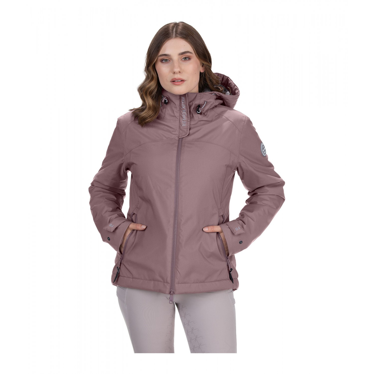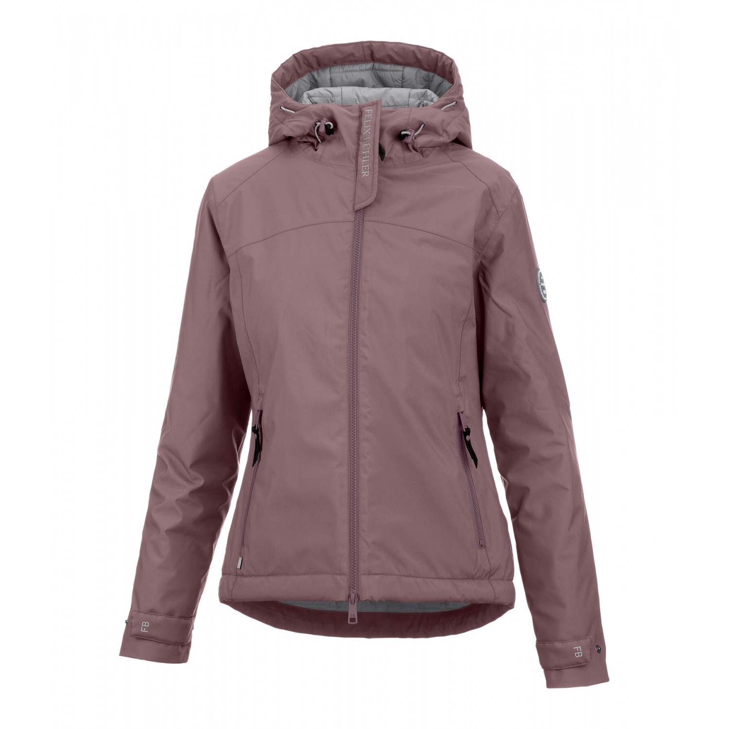 Функциональная короткая куртка с тёплым стёганым утеплителем с эффектом пуха. Водонепроницаемая, ветронепроницаемая и дышащая. Два передних кармана на молнии, один внутренний карман на молнии, двусторонняя молния на подкладке, регулируемый подол, регулируемые манжеты, высокий воротник с регулируемым стёганым капюшоном, который можно пристегнуть сзади, значок Felix Bühler на рукаве и светоотражающий принт Felix Bühler на воротнике. 100% полиэстер.