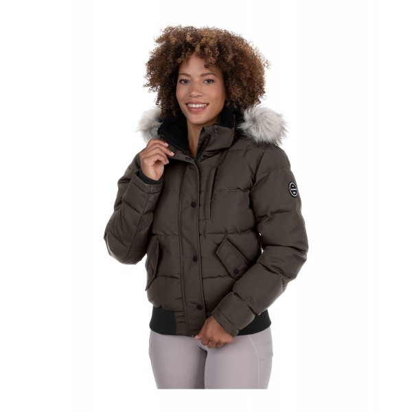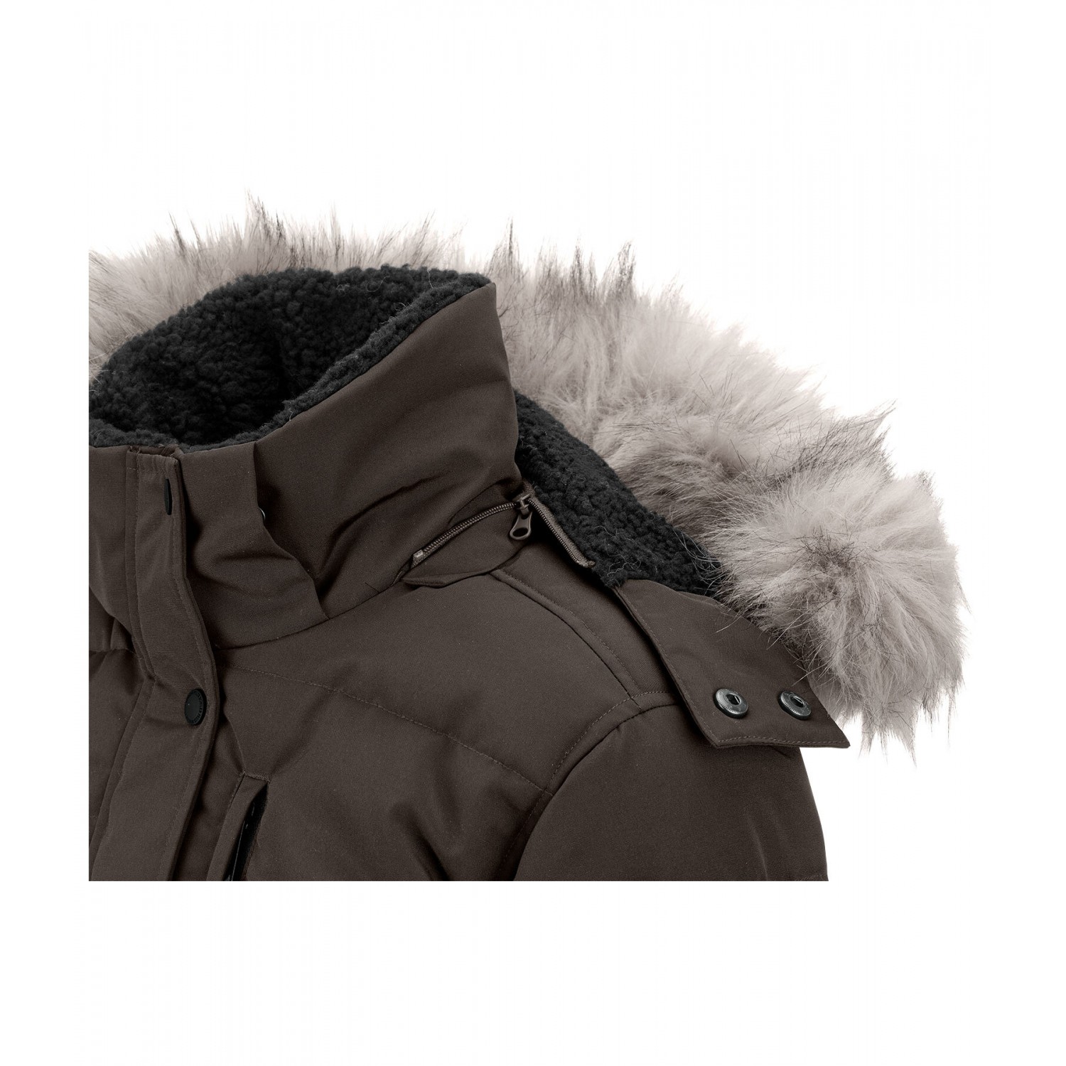 Стеганая куртка со съемным регулируемым капюшоном и съемным воротником из искусственного меха. Водо- и ветроустойчивость. Теплый наполнитель из искусственного пуха, воротник и капюшон на подкладке из мягкого шерстяного флиса. Потайная двусторонняя передняя молния с защитой подбородка, 2 прорезных кармана на кнопках и нагрудный карман на молнии. Рукава и подол заканчиваются манжетами из мягкой резинки. Подкладка с тонким рельефным рисунком, все карманы на флисовой подкладке. 100% полиэстер.
