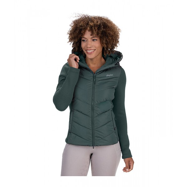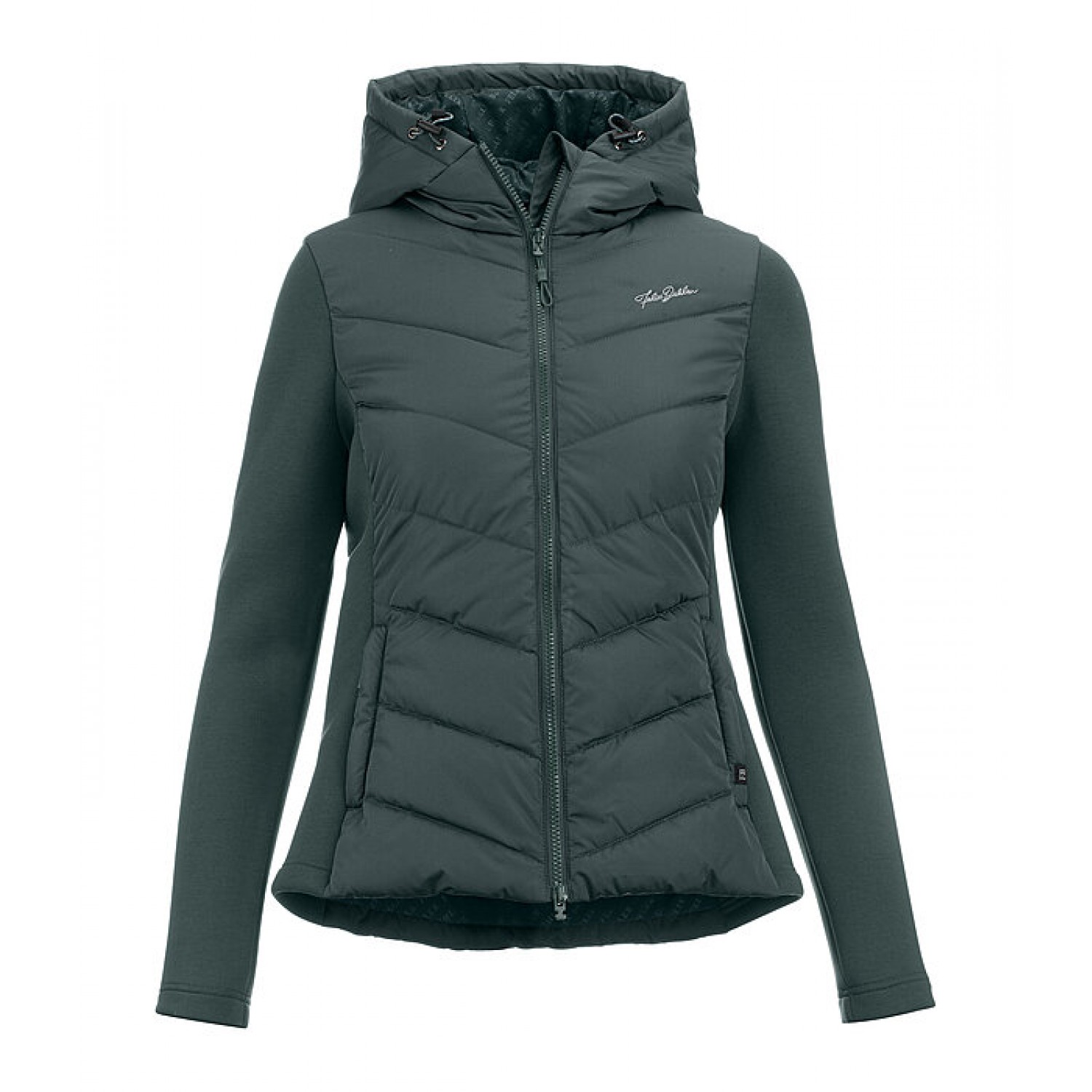 Стильная комбинированная куртка, сочетающая два материала для оптимальной свободы движений и комфорта. Передняя часть, спинка и капюшон выполнены из утеплённого материала с мягкой подкладкой. Рукава и боковые вставки выполнены из очень мягкого эластичного материала. Регулируемый капюшон застёгивается сзади. Особенности: двусторонняя молния на подкладке с защитой подбородка, два потайных кармана на молнии спереди и вышивка Felix Bühler. Стёганый материал: 100% полиэстер; эластичный материал: 65% полиэстер, 30% вискоза, 5% эластан.
