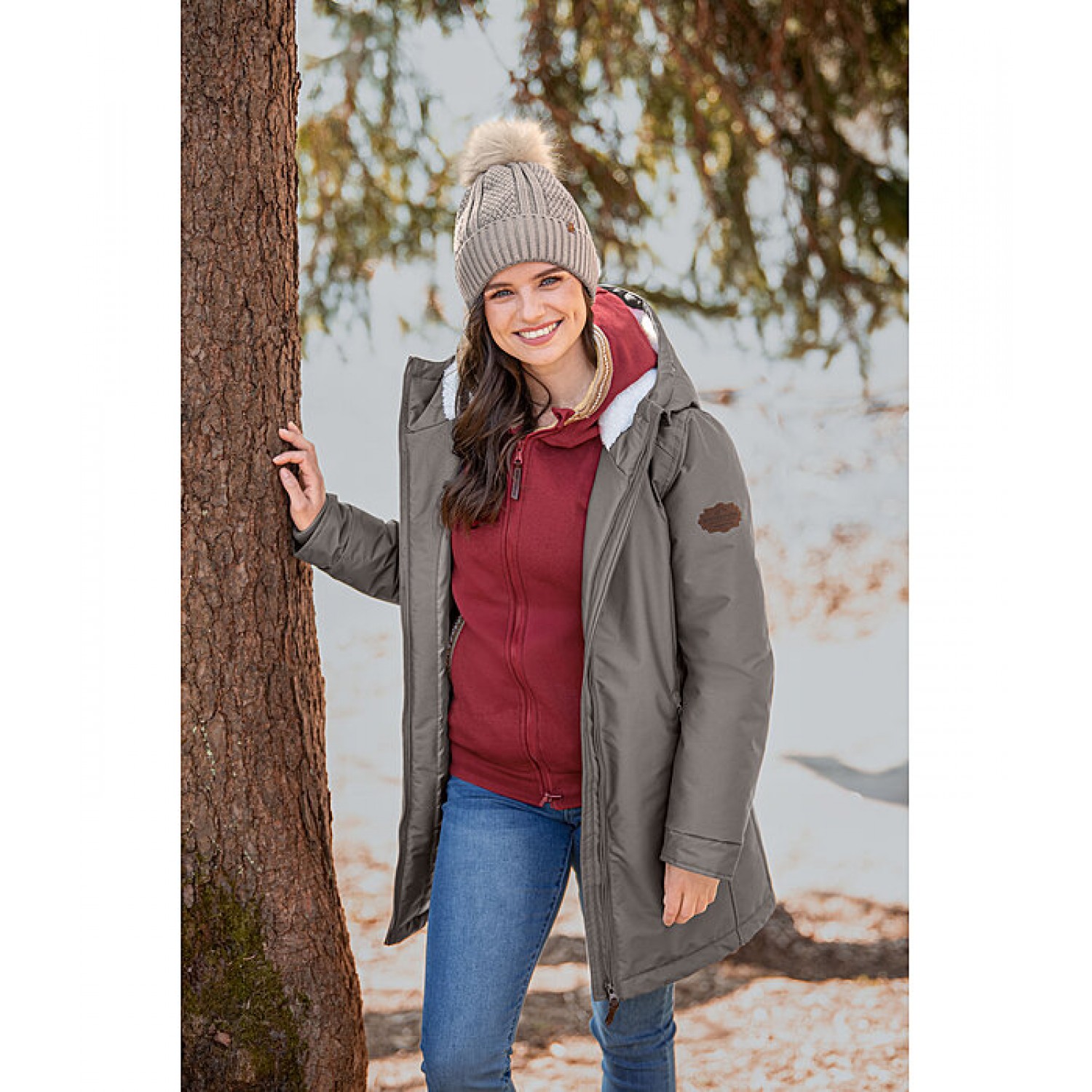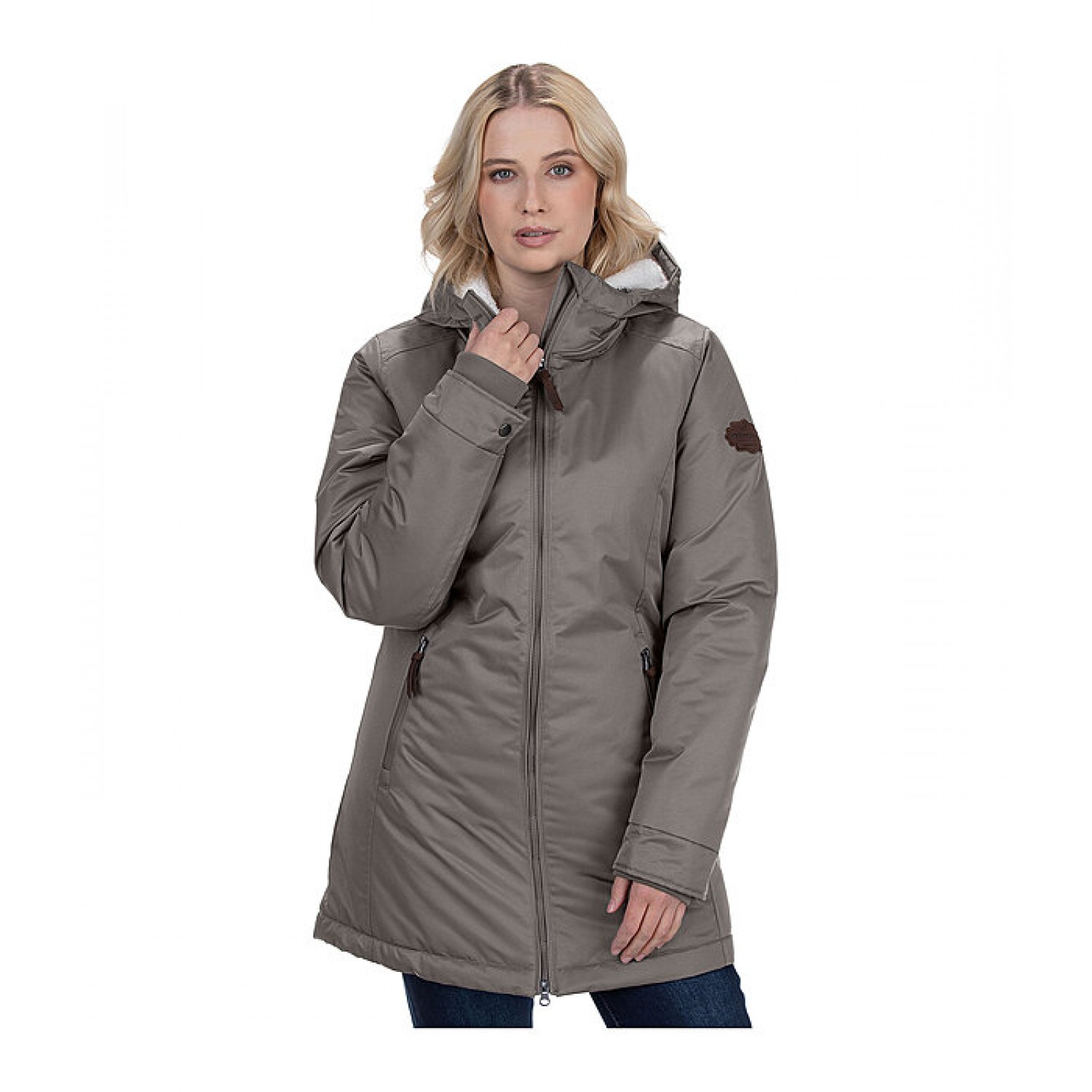 Ветрозащитная и водоотталкивающая зимняя парка с привлекательными эластичными сборками и разрезе сзади. Застежка на двустороннюю молнию спереди, два передних кармана на молнии и один внутренний карман на молнии. Капюшон на подкладке из мягкого флиса застегивается на кнопку. Трикотажные манжеты и логотип из искусственной кожи завершают образ. 100% полиэстер.