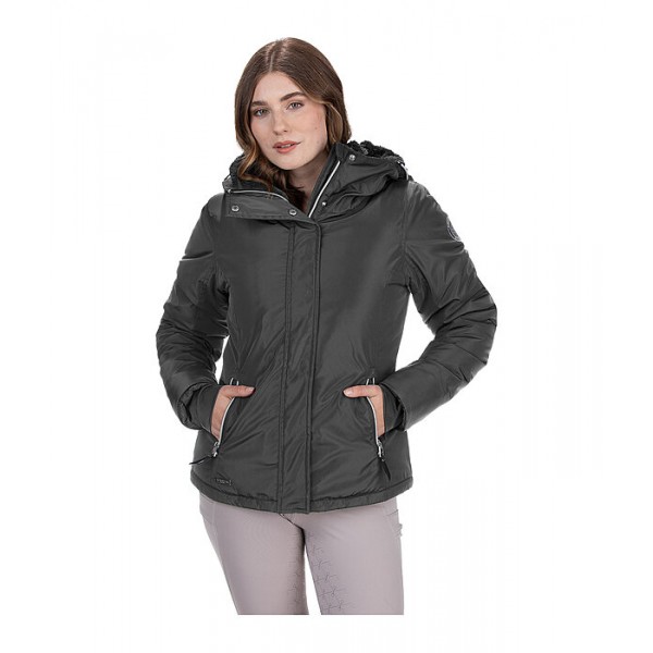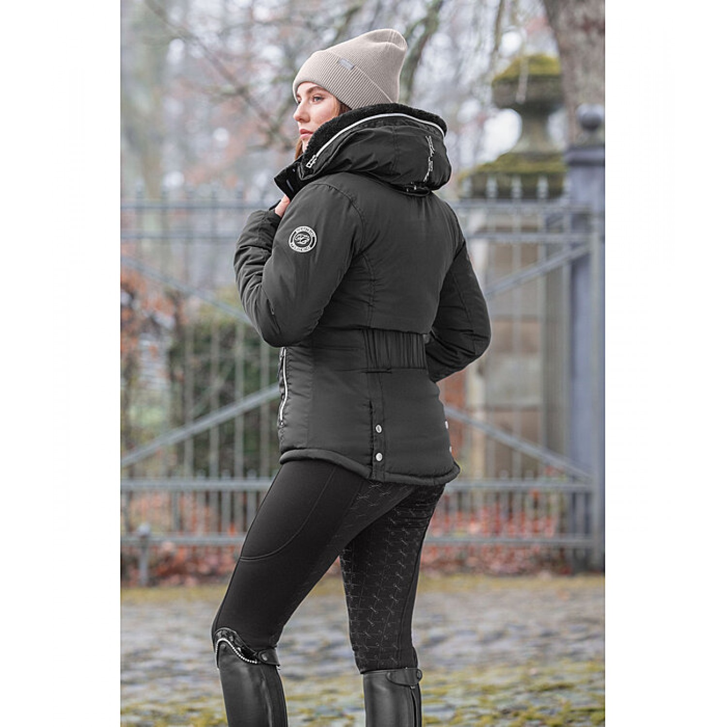 Суперстильная, тёплая куртка для верховой езды с увеличенным воротником на подкладке из мягкого плюшевого флиса и убирающимся капюшоном, также на подкладке из плюшевого флиса. Водо- и ветроустойчивая. Теплая, мягкая подкладка, потайная двусторонняя молния спереди, два передних кармана на молнии, один внутренний карман на молнии, два шлица для езды на кнопках сзади, эластичная вставка на талии сзади и высококачественная вышивка Felix Bühler на воротнике и рукавах. Манжеты рукавов с эластичными отверстиями для больших пальцев. 100% полиэстер.