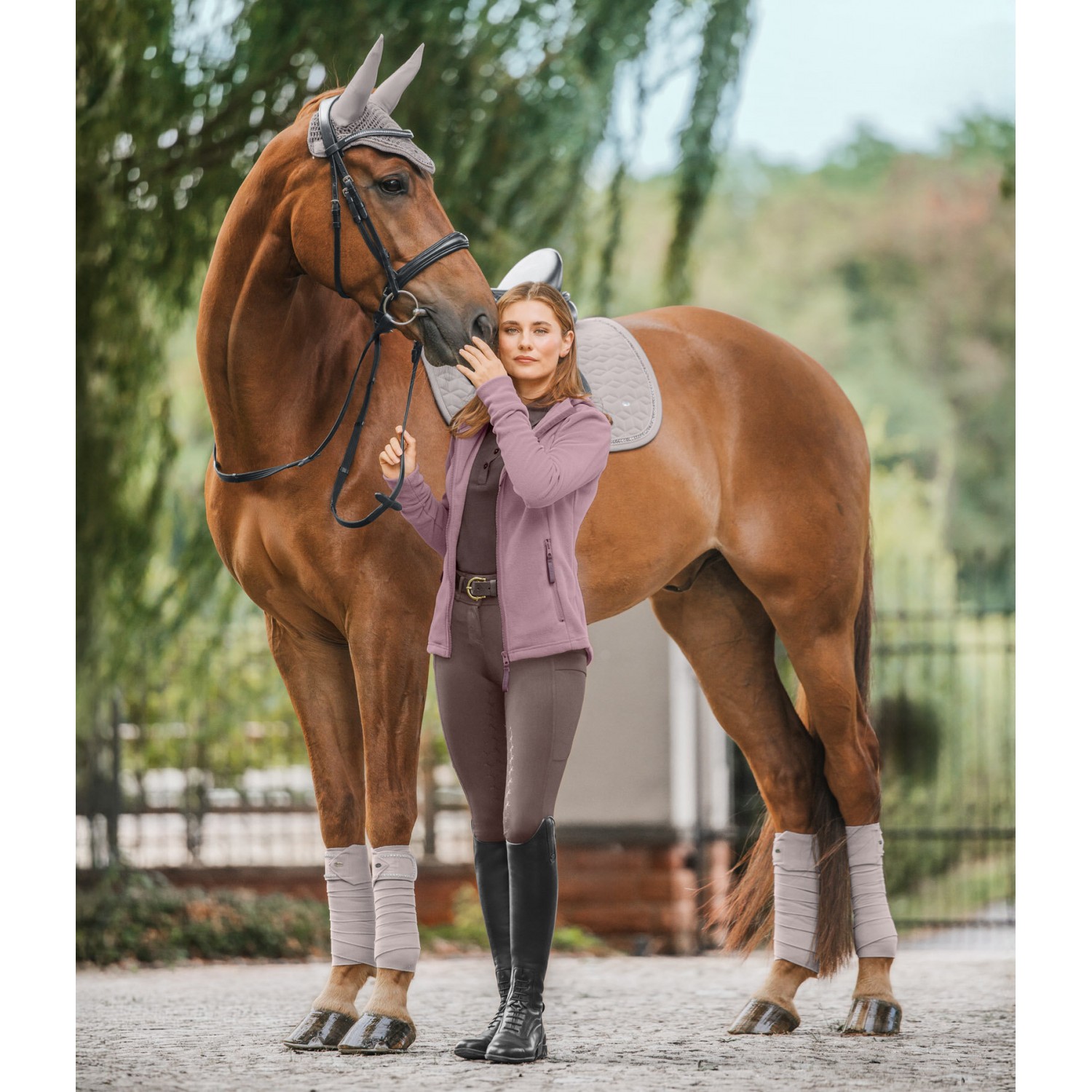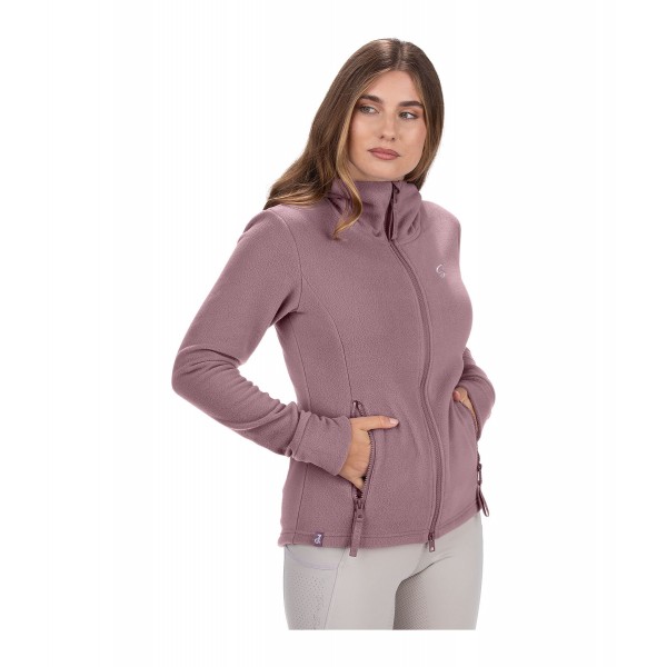 Мягкая флисовая куртка с капюшоном. Двусторонняя молния на подкладке спереди, с защитой подбородка, 2 кармана на молнии спереди и изящная вышивка логотипа на груди. Немного длиннее сзади и обработано антипиллинговой обработкой. 100% полиэстер.