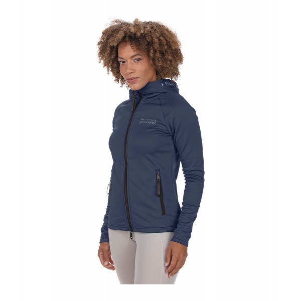 Спортивная, легкая, эластичная куртка с капюшоном. Прозрачные силиконовые принты с логотипом на капюшоне и груди. Воздухопроницаемый и быстросохнущий материал. Подкладка, двухсторонняя молния спереди с защитой подбородка и 2 передних кармана на молнии. 95% полиэстер, 5% эластан.