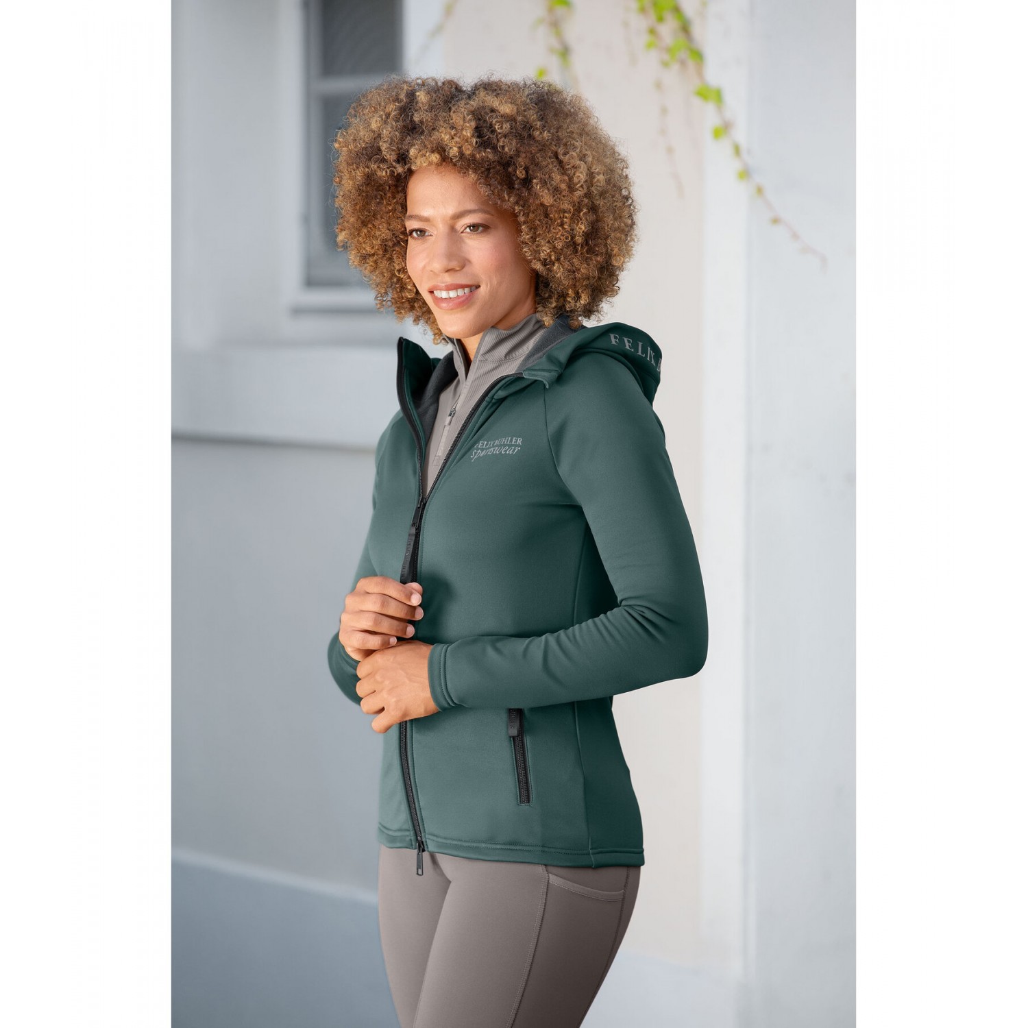 Спортивная, легкая, эластичная куртка с капюшоном. Прозрачные силиконовые принты с логотипом на капюшоне и груди. Воздухопроницаемый и быстросохнущий материал. Подкладка, двухсторонняя молния спереди с защитой подбородка и 2 передних кармана на молнии. 95% полиэстер, 5% эластан.