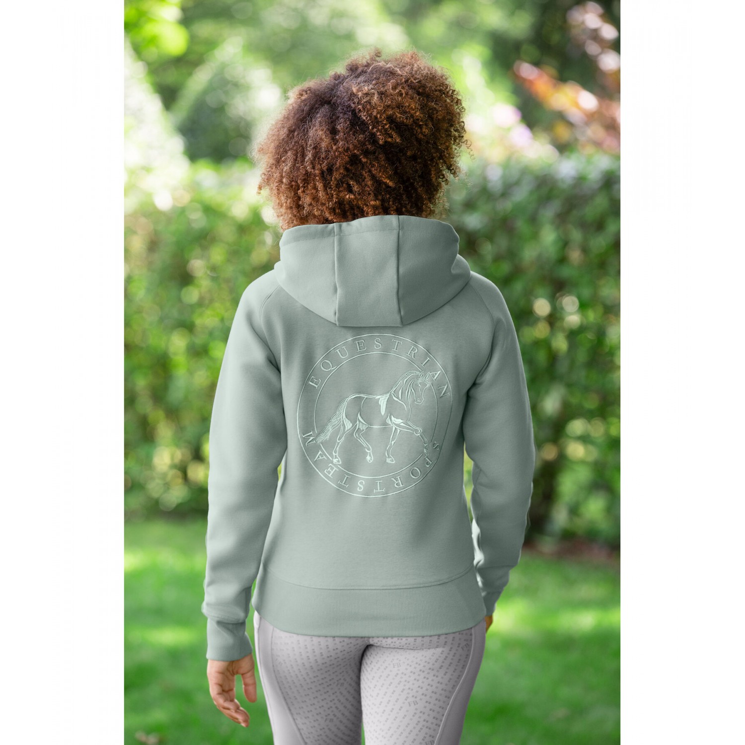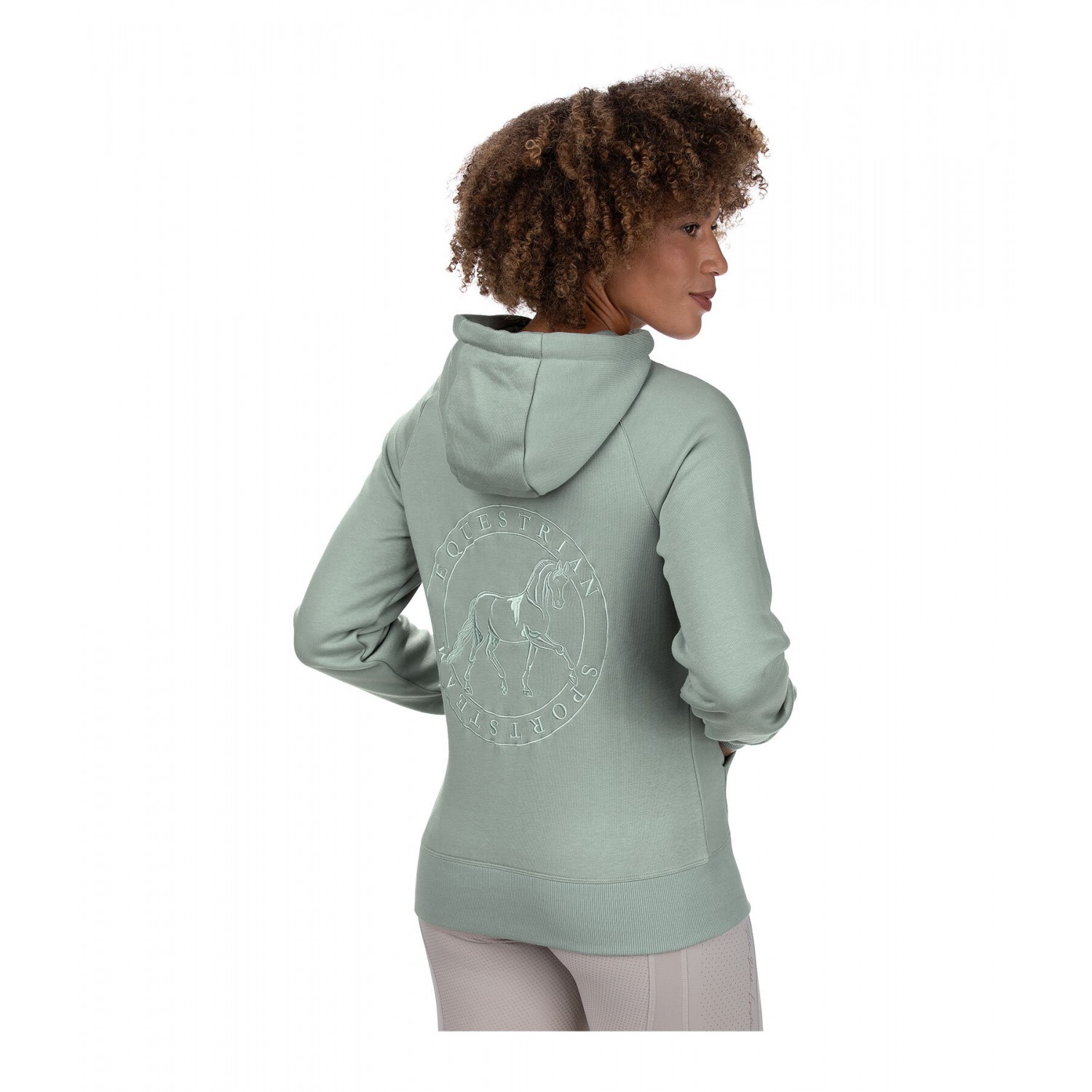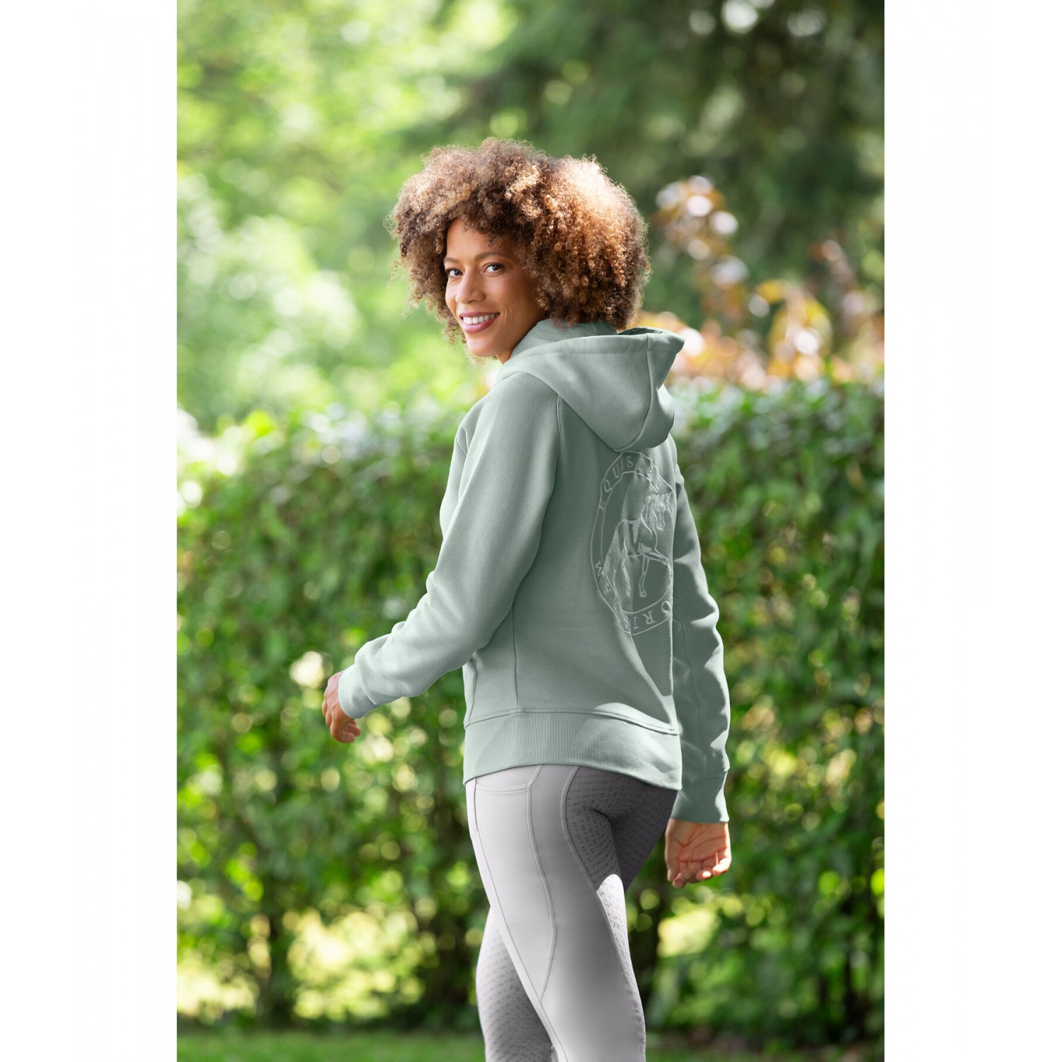 Супермягкая и стильная толстовка с капюшоном изготовленная из высококачественного эластичного хлопка. Имеет карман-кенгуру спереди, мягкую эластичную резинку на манжетах и подоле, большую вышитую лошадь на спине и небольшой вышитый логотип на груди. Состав: 70% хлопок, 30% полиэстер.