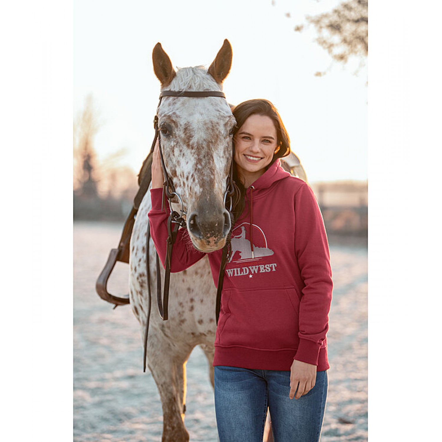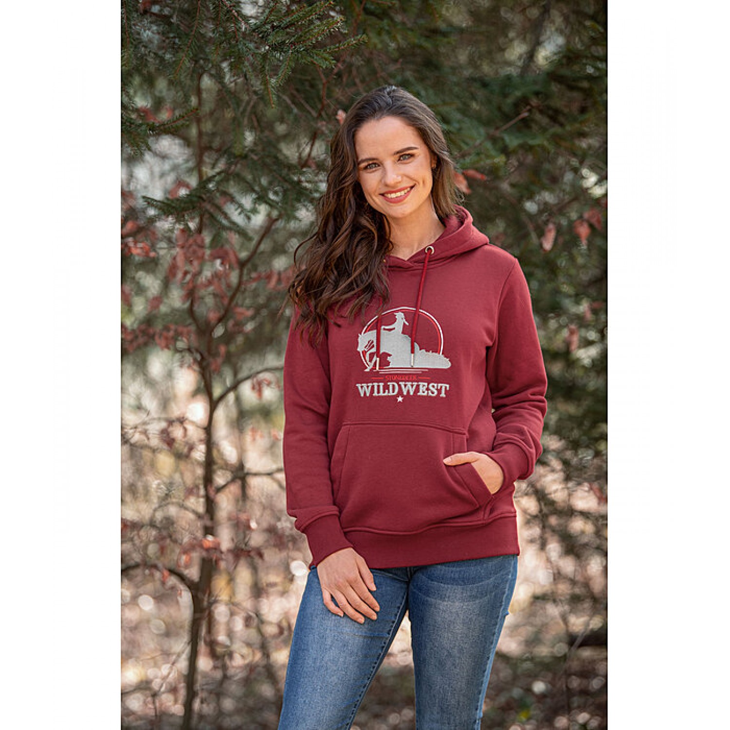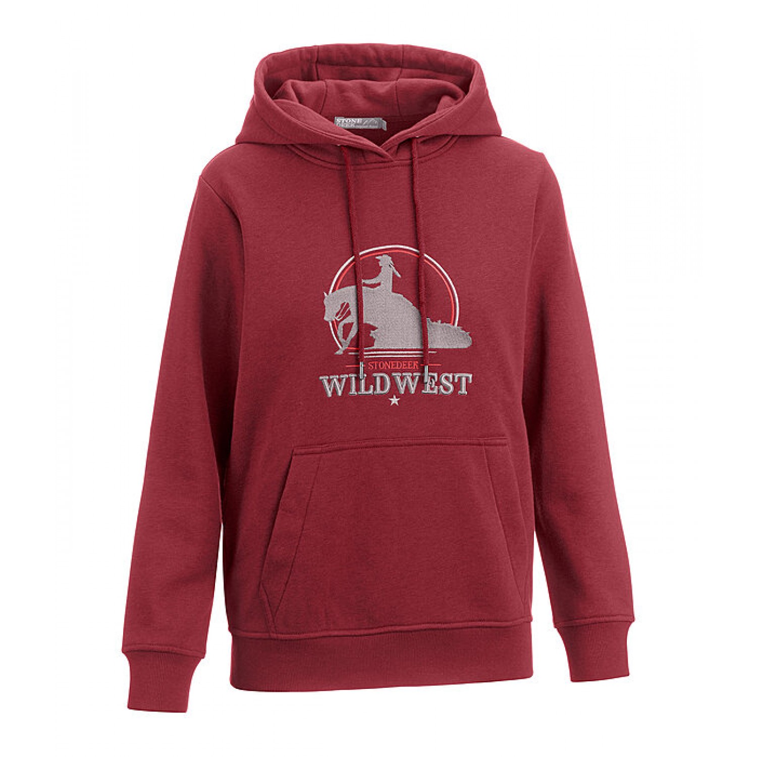 Классическая дышащая толстовка с вышивкой в стиле вестерн на груди. Передний карман-кенгуру на пуговицах. Эластичный пояс и манжеты. 65% полиэстер, 35% хлопок.
