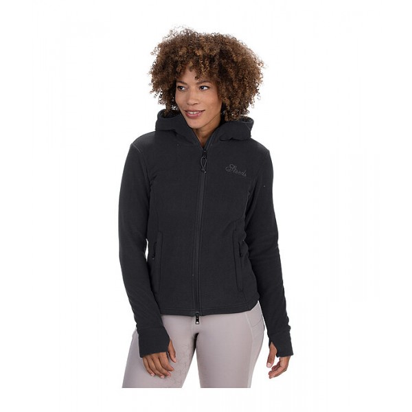 Мягкая, очень теплая флисовая куртка с высоким капюшоном. Приталенный силуэт, сзади немного длиннее, двусторонняя молния спереди с защитой подбородка, 2 потайных кармана на молнии спереди и манжеты с отверстиями для большого пальца. Вышивка STEEDS на груди. 100% полиэстер.