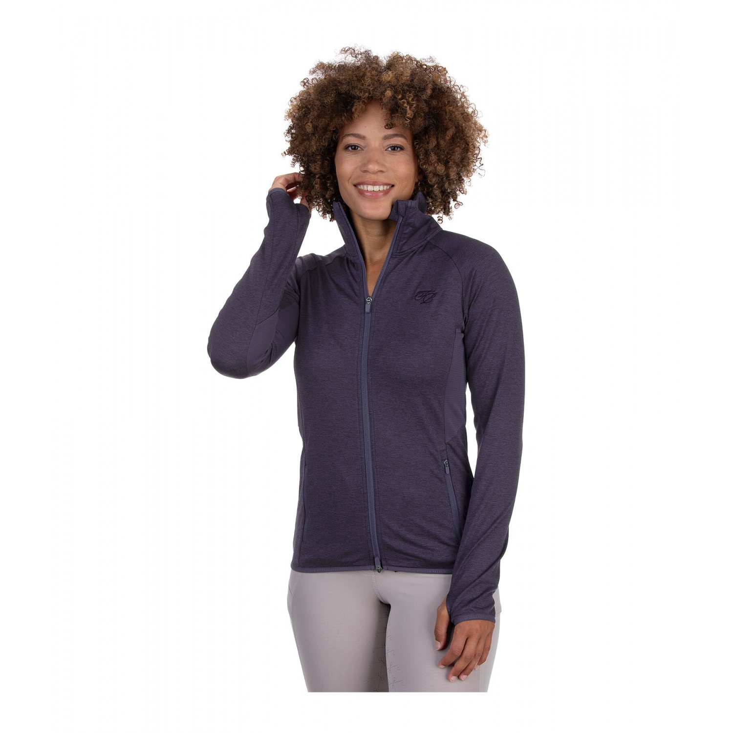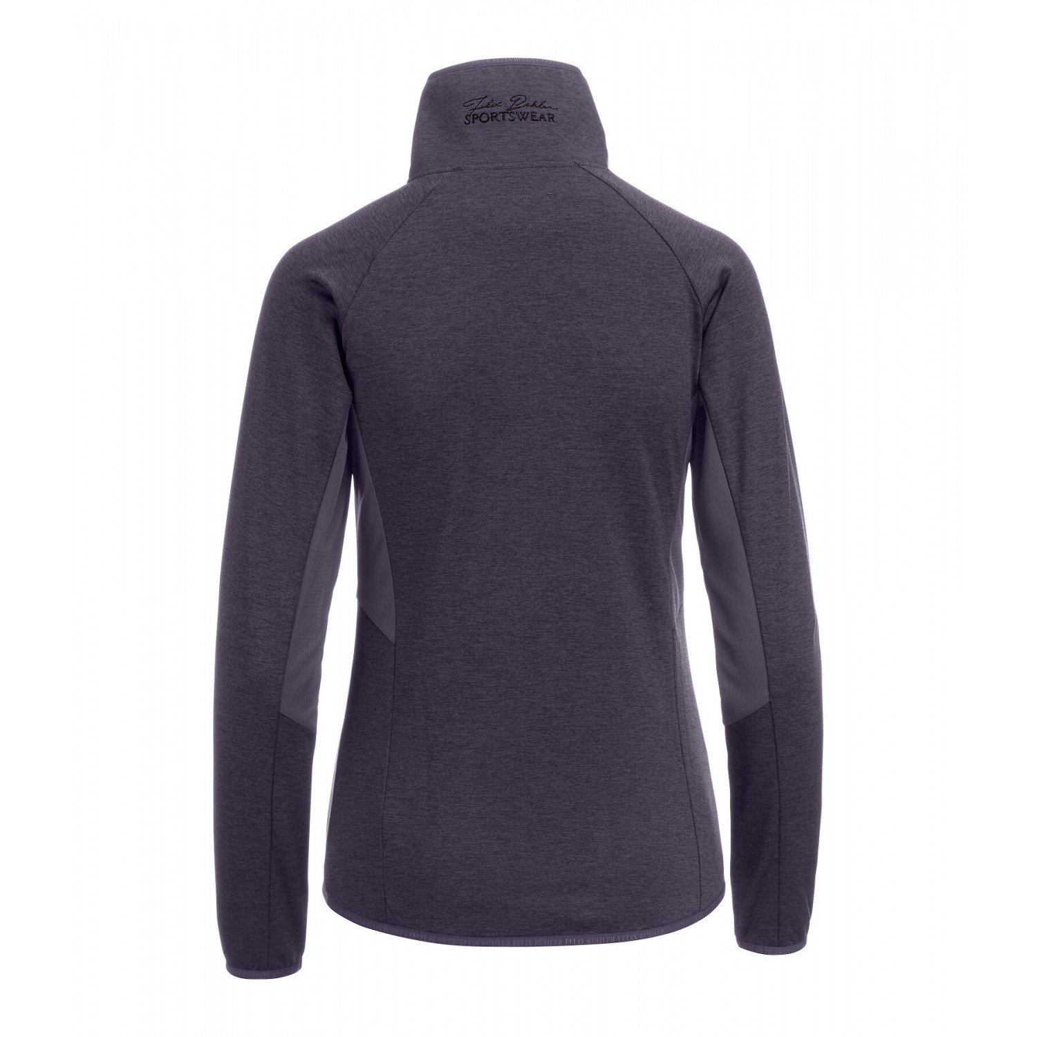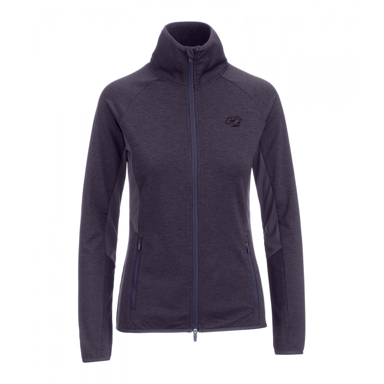 Мягкая, эластичная спортивная куртка меланжевого цвета. Дышащая и быстросохнущая. Сетчатые вставки под мышками и по бокам, начес на внутренней стороне, два передних кармана на молнии, двусторонняя молния спереди с защитой подбородка, эластичные манжеты на воротнике-стойке, подоле и рукавах. 92% полиэстер, 8% эластан.