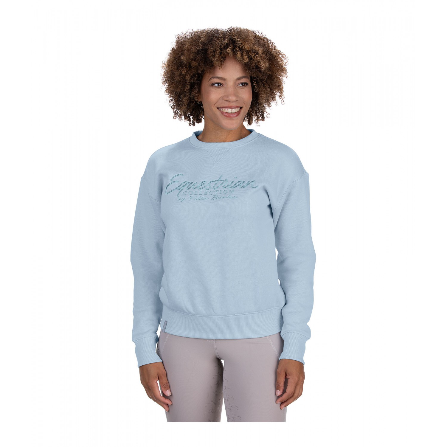 Свитер с круглым вырезом из мягкой трикотажной ткани. Высококачественная вышивка в тон на груди. Мягкая резинка по низу, горловине и манжетам. Состав: 65% полиэстер, 35% хлопок.
