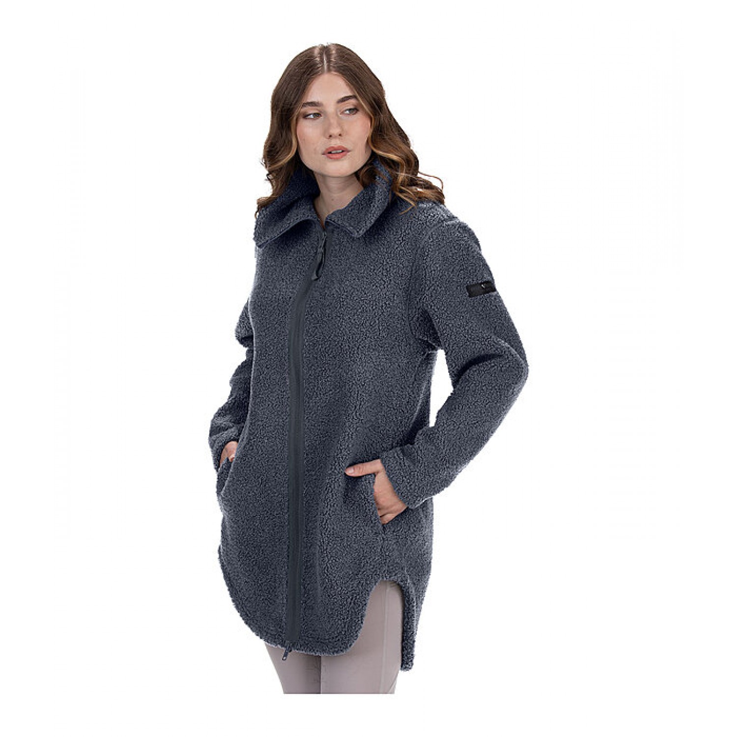 Уютная удлиненная куртка из очень мягкого флиса. Свободный крой, воротник стойка. Двусторонняя молния под прокладкой спереди, 2 передних кармана, закругленный низ и значок Felix Bühler на рукаве. 100% полиэстер.