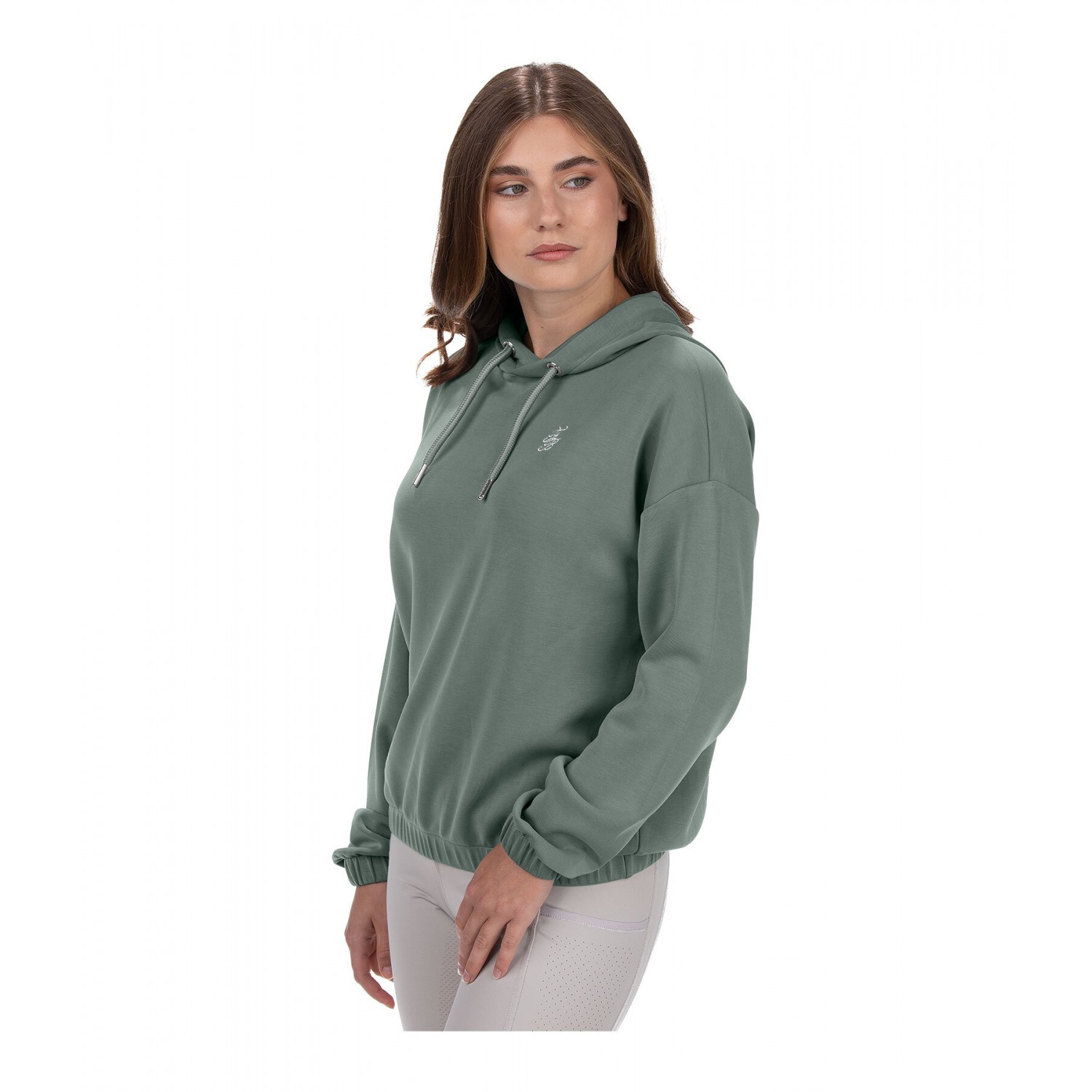 Очень мягкая, эластичная толстовка свободного кроя. Регулируемый капюшон, эластичные манжеты и нижний край. Вышивка логотипа из блестящей пряжи на груди. 52% полиэстер, 40% модал, 8% эластан.