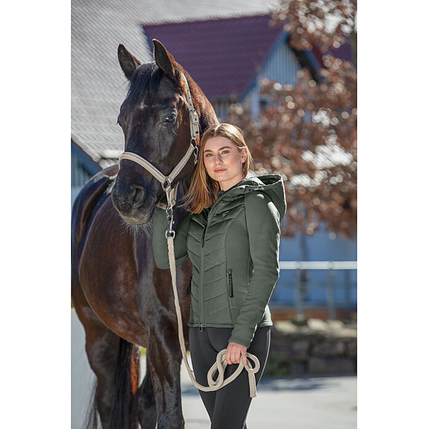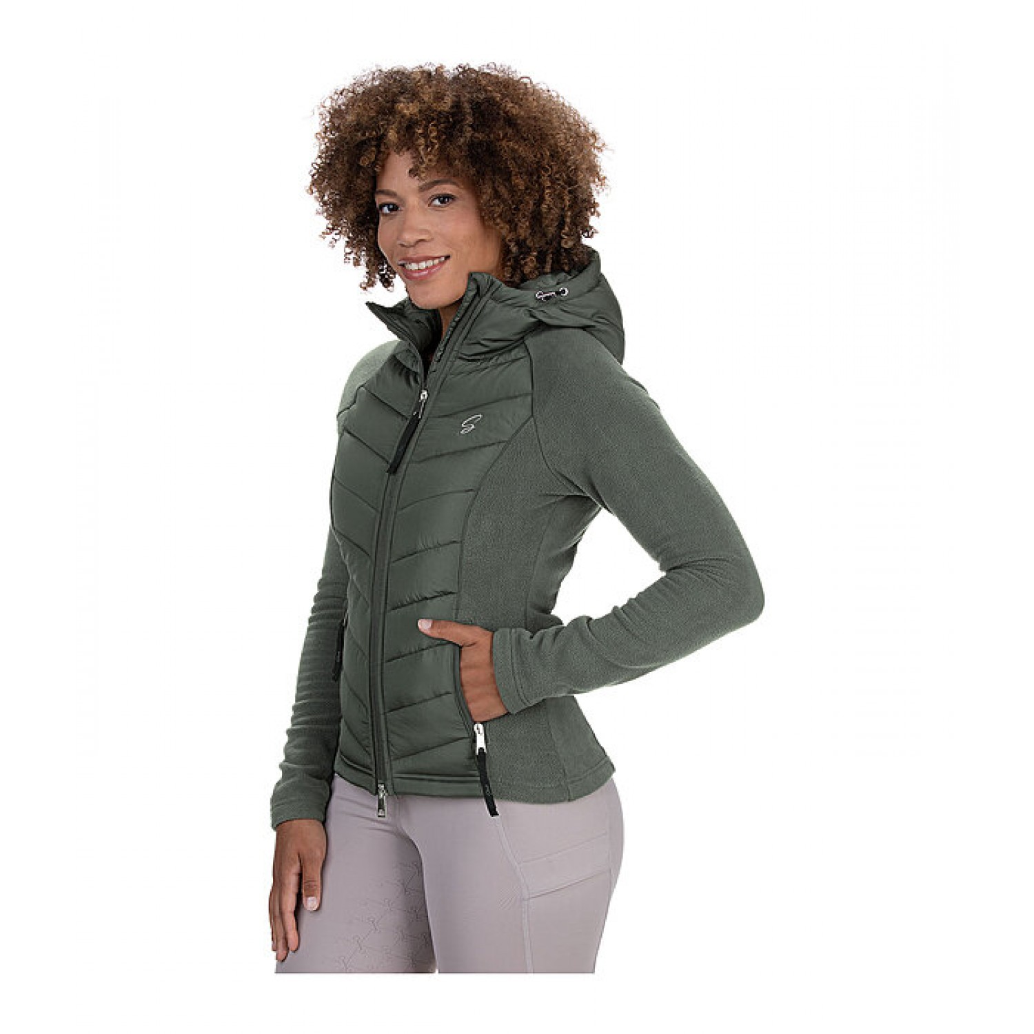 Куртка с капюшоном из мягкого флиса и высококачественной микрофибры с лёгкой подкладкой. Флисовые рукава, спинка и боковые панели делают куртку удобной и уютной. Капюшон регулируется и застёгивается на кнопку сзади. Двусторонняя молния спереди с защитой подбородка, два кармана на молнии спереди, рукава реглан и вышивка STEEDS на груди. 100% полиэстер.