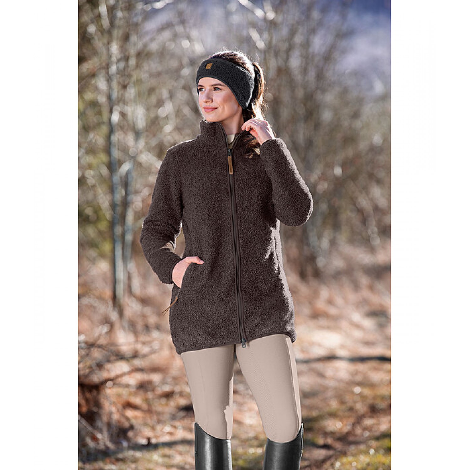 Удлиненная куртка из очень мягкого флиса. Воротник-стойка, облегающий крой. Двусторонняя молния на подкладке, два кармана на молнии спереди, эластичные манжеты, воротник и подол, а также значок STEEDS на рукаве. 100% полиэстер.