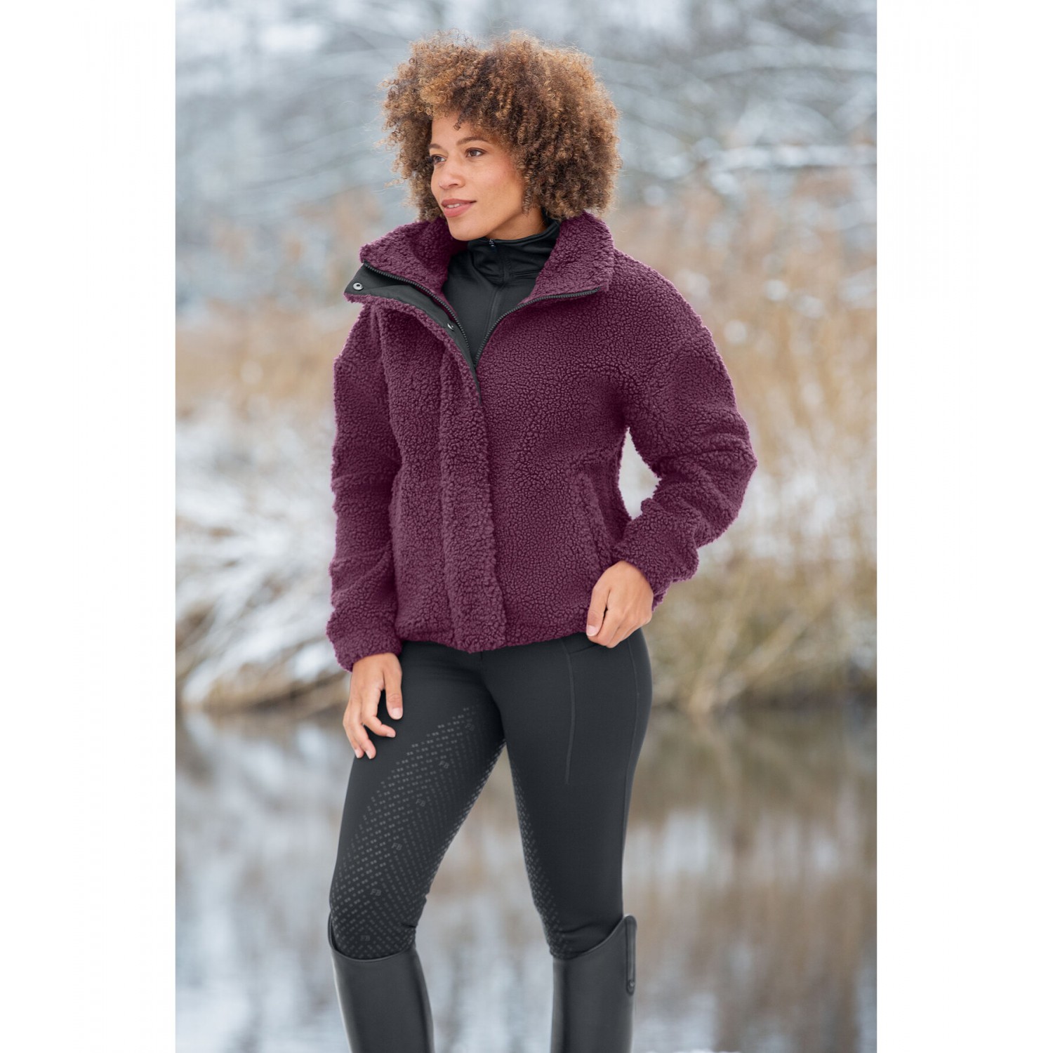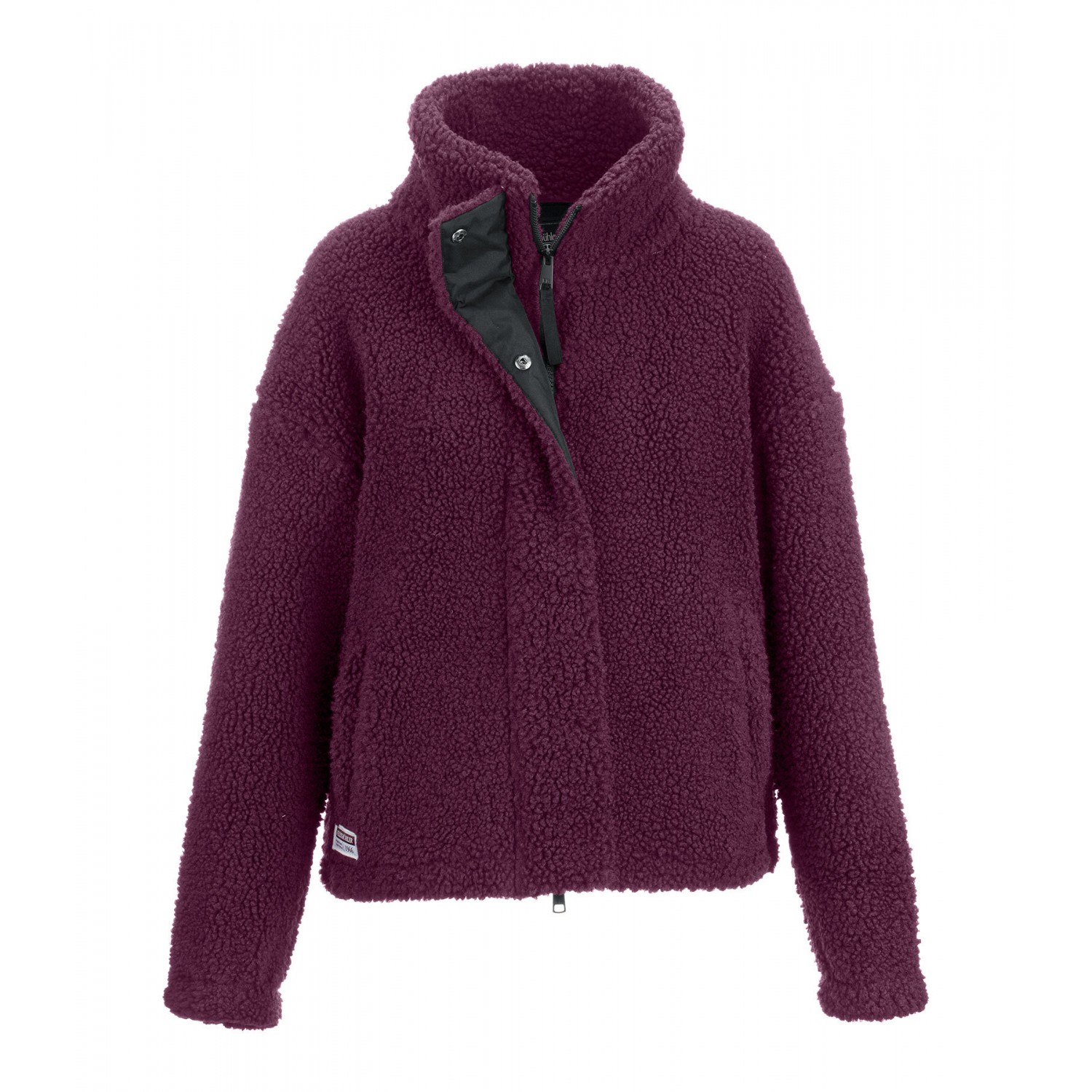 Уютная куртка из мягкого флиса с воротником стойкой свободного кроя. Потайная двусторонняя молния спереди с планкой на кнопках, 2 потайных кармана на молнии спереди, эластичные манжеты и низ, регулируемый пояс и тканевый значок Felix Bühler на подоле. 100% полиэстер.