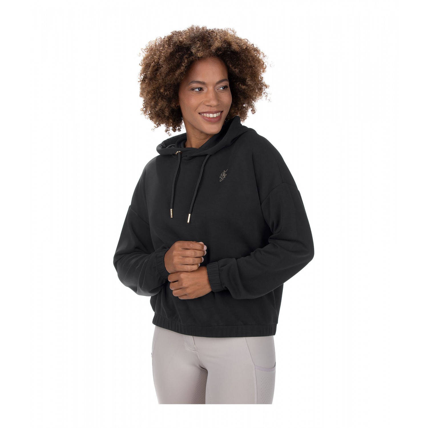 Очень мягкая, эластичная толстовка свободного кроя. Регулируемый капюшон, эластичные манжеты и нижний край. Вышивка логотипа из блестящей пряжи на груди. 52% полиэстер, 40% модал, 8% эластан.