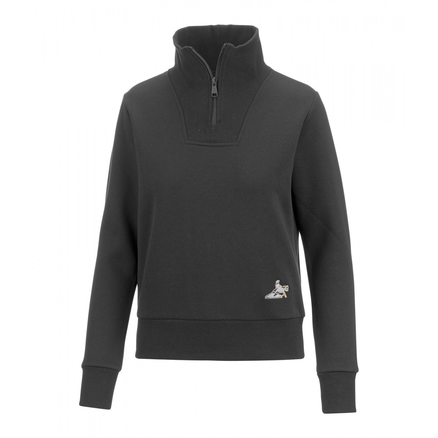 Мягкий свитер с высоким воротником на молнии, изготовленный из высококачественного эластичного хлопка. Привлекательные принты на спине и подоле. 65% полиэстер, 35% хлопок.