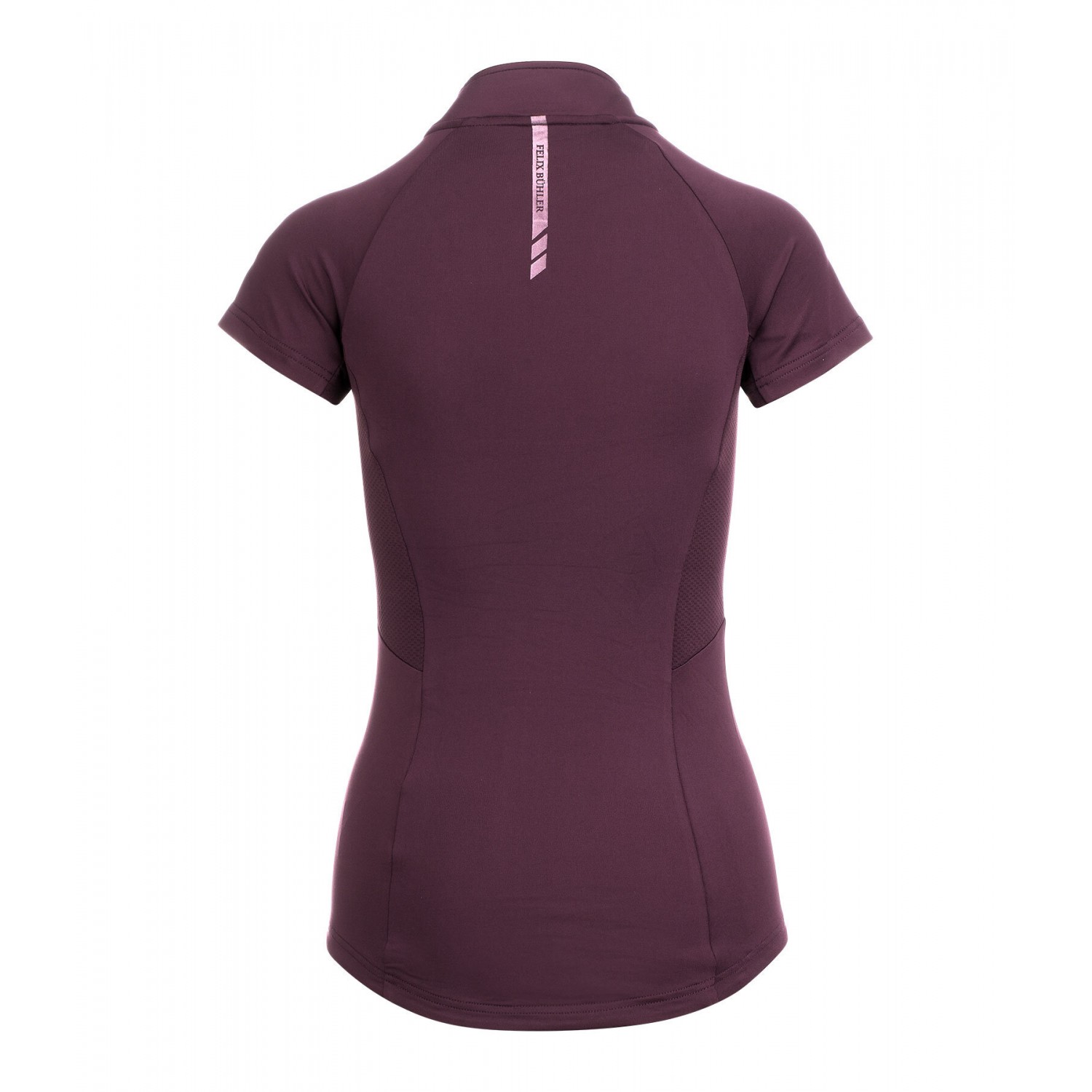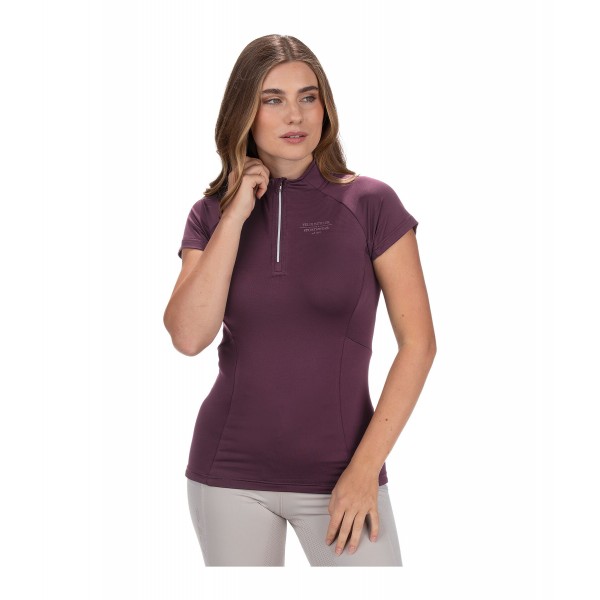 Эластичная и мягкая футболка на молнии с люрексом и воротником-стойкой. Отличная воздухопроницаемость благодаря боковым сетчатым вставкам. Быстросохнущая. 88% полиэстер, 12% эластан.